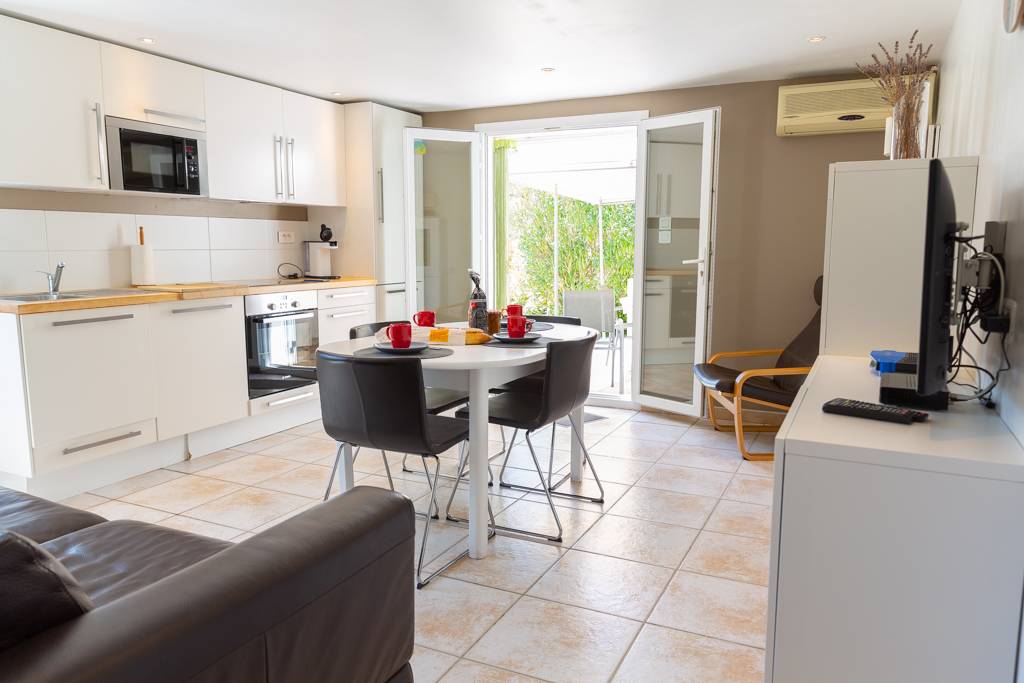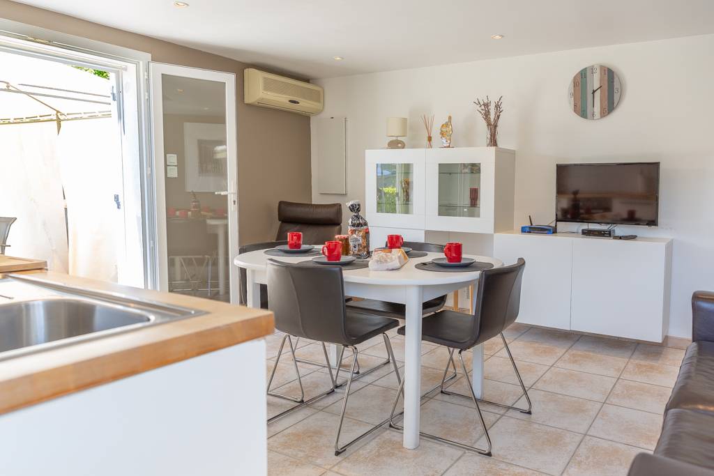 Inmitten ländlicher Idylle, auf einem 1825 m² großen Grundstück, befindet sich dieses 54 m² große Ferienhaus im Erdgeschoss der Villa der Eigentümer (mit separatem Eingang). Es umfasst: