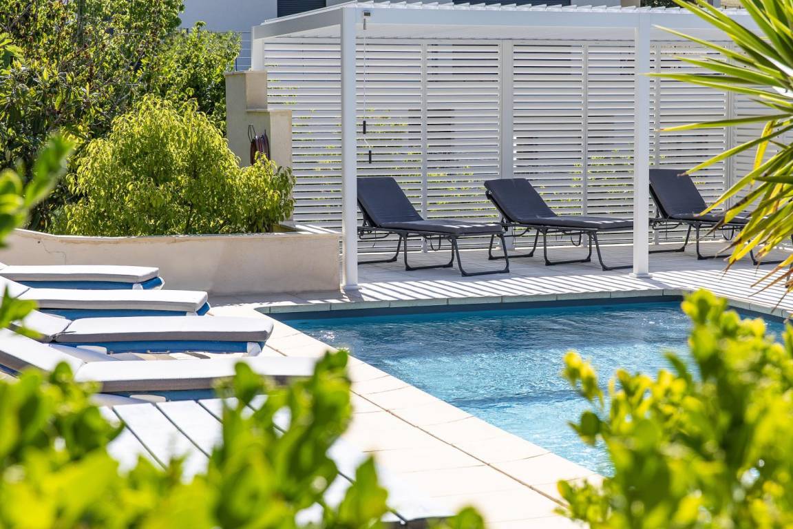 - Gemeinsamer Swimmingpool (8x4 Meter), geöffnet vom 6. April bis 26. Oktober von 9:00 bis 20:00 Uhr und beheizt vom 27. April bis 19. Oktober. Der Pool ist alarmgesichert. Die Nutzung ist nur den im Mietvertrag genannten Personen gestattet.
