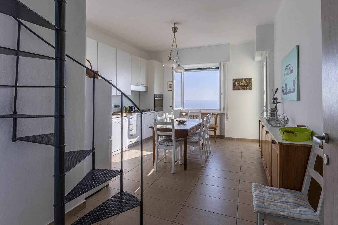 Küche: gut ausgestattete Küche, Esstisch, Spülmaschine, Kühlschrank, Herd, Ofen, Toaster, Italienische Kaffeemaschine, WiFi Internet, Ausgang auf den Balkon, Galerie.