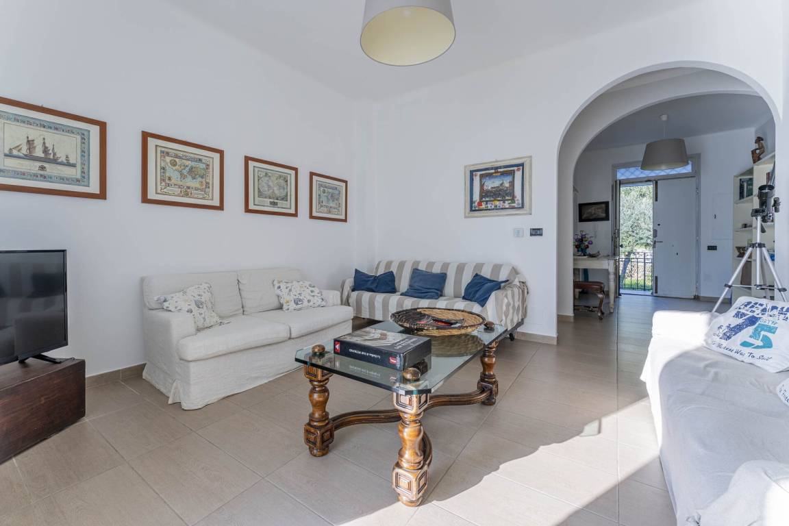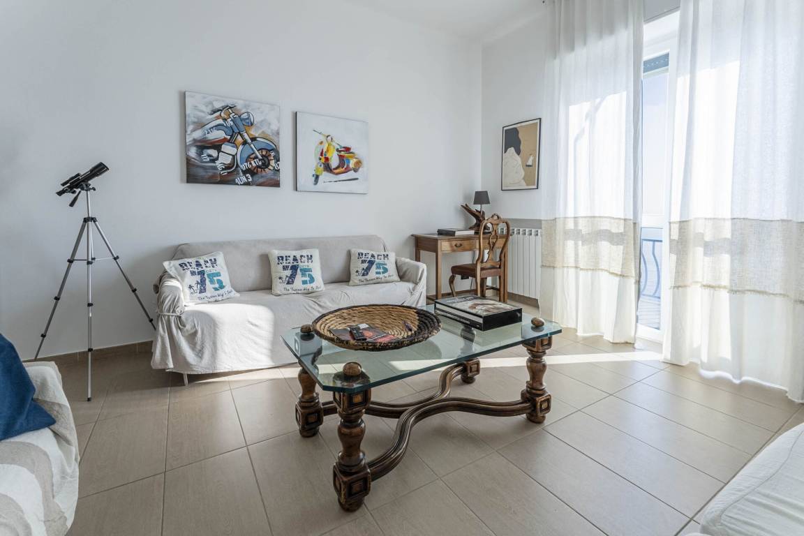 Wohnzimmer: Sofa, WiFi Internet, Klimaanlage, TV, Ausgang auf den Balkon.