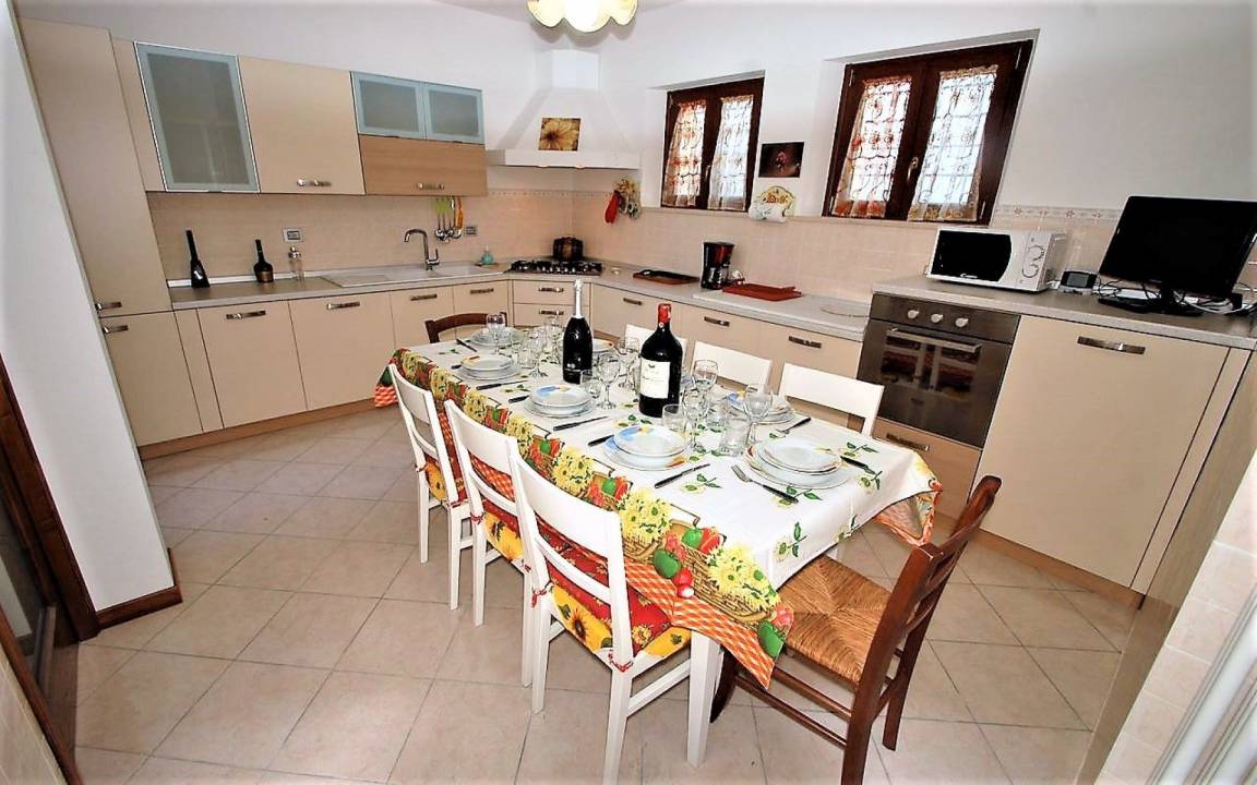 Küche (16 m²): gut ausgestattete Küche, Esstisch (Personen: 8), Spülmaschine, Kühlschrank, Tiefkühler, Mikrowelle, Herd, Ofen, Toaster, Italienische Kaffeemaschine, Amerikanische Kaffeemaschine, WiFi Internet, Fliegengitter, TV, Ausgang auf den Garten, Ausgang auf die Terrasse.