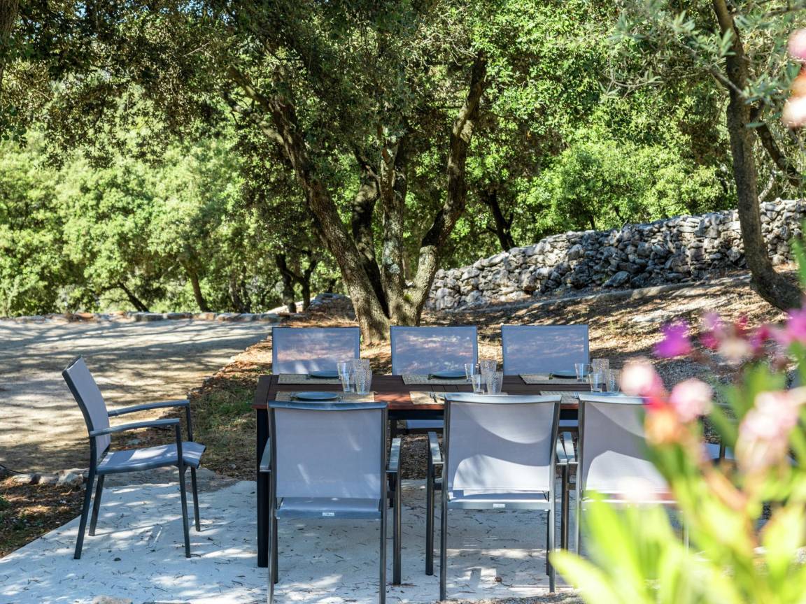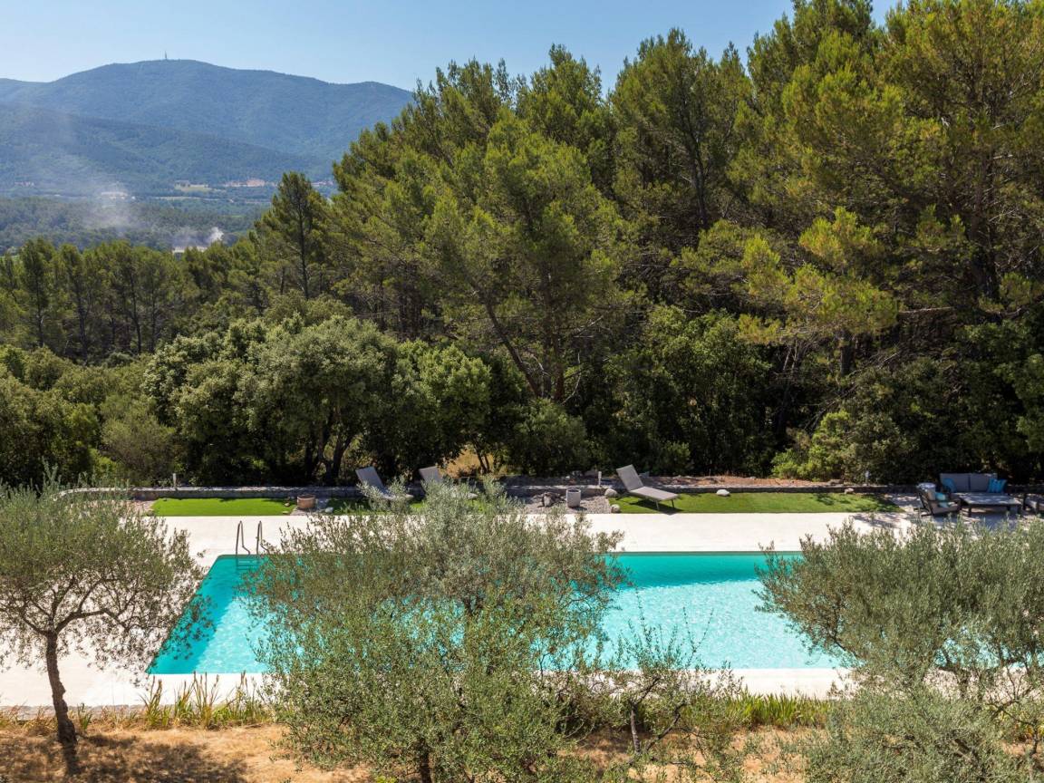 Hausbeschreibung : Hier haben Sie die Privatsphäre, die Sie in Ruhe wieder aufladen kann. Eine Villa mit geschmackvoller Einrichtung, bequemen Betten und einer fantastischen Lage mit Panoramblick. Sie sind von Natur aus auf Ihrem privates Grundstück von ca. 4 Hektar umgeben. Ziehen Sie ein paar Runden in Ihrem großen privaten Pool, nehmen Sie einen Aperitif auf der Terrasse an dem schönen Stein Pool-Haus (mit Kühlschrank, WC und Dusche) und Handtuch auf Ihrer Liege. Das ist Urlaub !