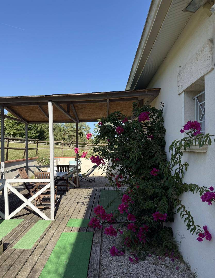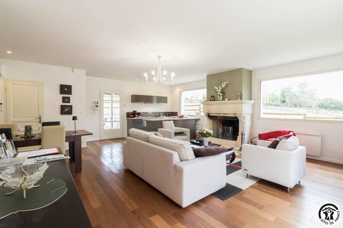 „Nous venons de passer 6 semaines magnifiques a la villa Les Paradoux. La villa est amenagee avec beaucoup de gout, et est tres bien equipee. Tout y est pense. Les 2 grandes baies vitrees dans la piece principale apportent une grande luminosite et une vue splendide sur la nature qui entoure la villa. Tous les soirs, nous admirions les couchers du soleil. Deux chevaux, cinq moutons, deux anes, une grande voliere de perruches, un petit poulailler avec 5 poules apportent vie et chaleur a cette belle nature. Nous habitons en Floride et depuis 2018 nous revenons chaque annee a "notre petit paradis". On ne s'en lasse jamais. Les proprietaires, Monsieur et Madame Deligny, toujours tres discrets, sont aux petits soins et toujours disponibles a repondre a toute question. La villa est tres proche des commercants et de la ligne de metro. Merci encore aux proprietaires pour ce magnifique sejour et a bientot.“