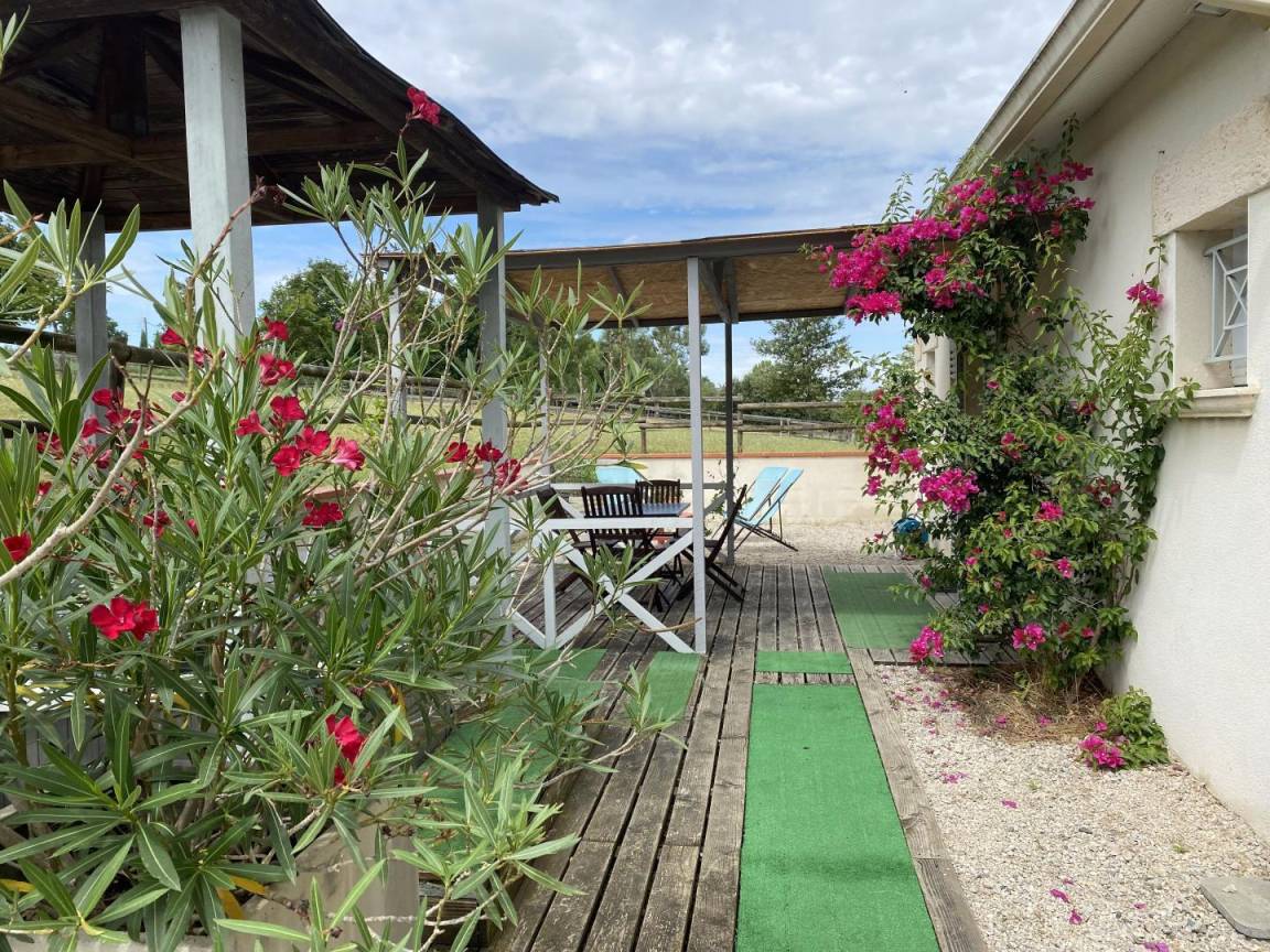 „Nous venons encore de passer de merveilleuses vacances a la Villa Les Paradoux. La villa est tres bien amenagee et de tres bons gouts. Tout a ete pense jusqu'au moindre detail. Les deux grandes baies vitrees de la piece de vie permettent une vue splendide sur la nature qui entoure cette belle propriete. Les proprietaires sont tres accueillants et toujours a l'ecoute pour repondre aux moindres questions. Tout est calme et serein bien que nous soyons a quelques minutes des commercants. Bien sur nous reviendons comme nous le faisons depuis quelques annees. Elisabeth et Charles, Floride“