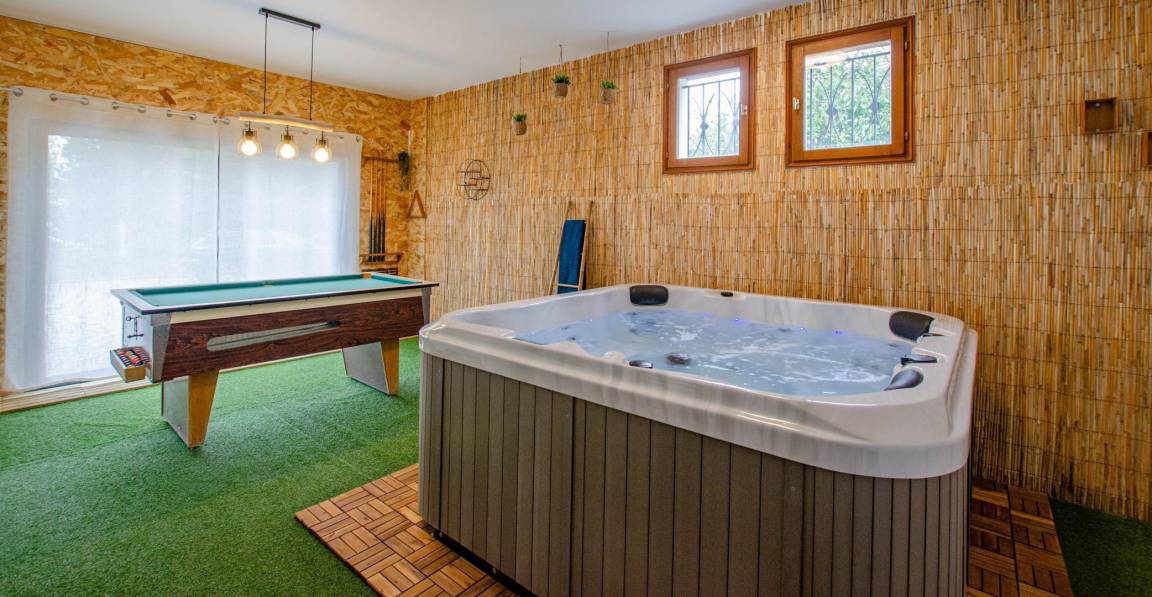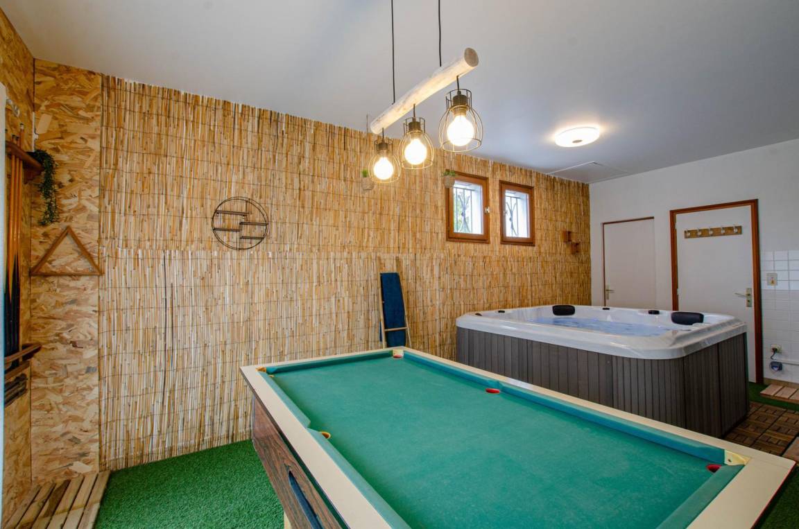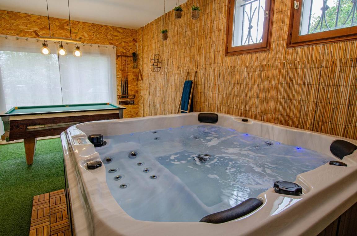 „Superbe maison, agréable et bien agencée. Une salle de détente avec jacuzzi et billard super appréciable où nous avons pu profiter pour nous reposer et passer d'agréables moments en famille. L'environnement est merveilleux avec d'agréables balades en forêt. Nous avons été chaleureusement accueillis par notre hôte avec de gentilles attentions. Pour profiter de moments calmes et paisibles en famille, c'est la maison...“