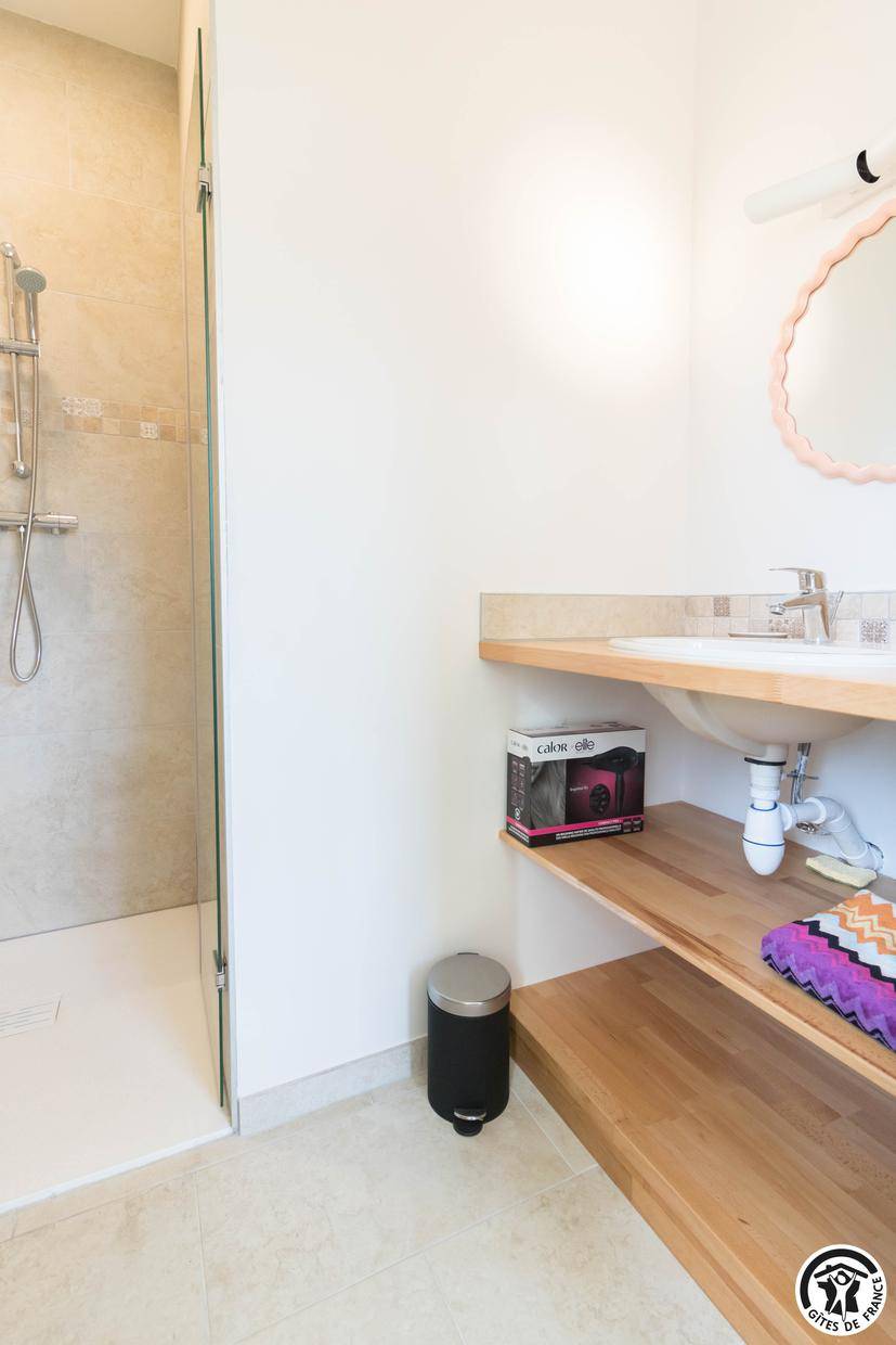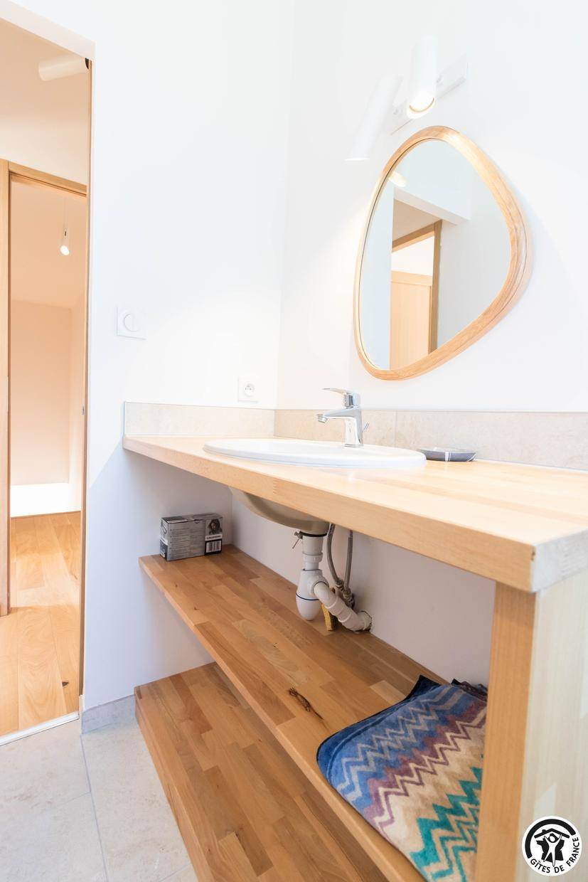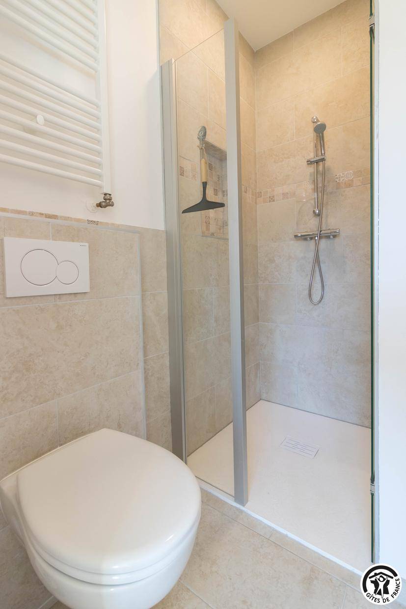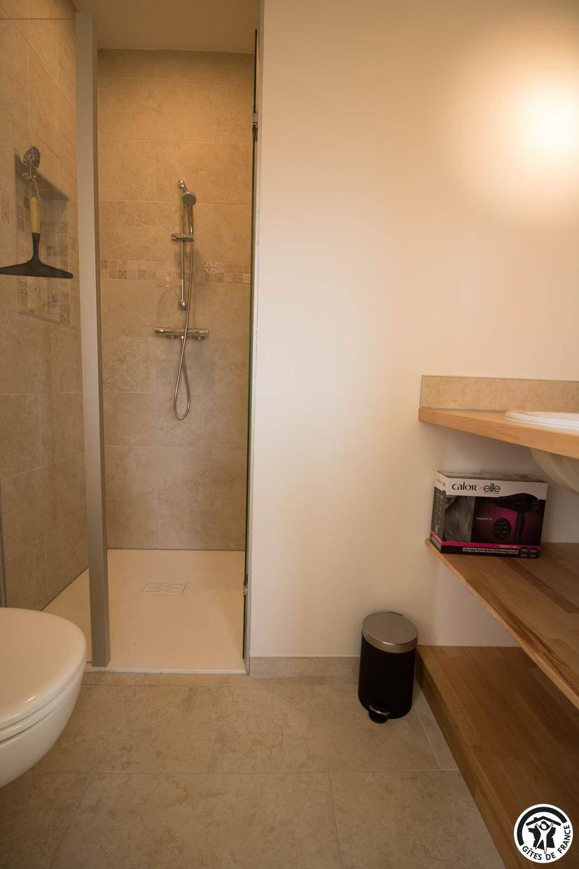 „Je me permets de suggérer quelques crochets sur les murs de les salles de bain et l'utilisation de draps une couverture en laine légère au lieu d'une couette. Merci.“