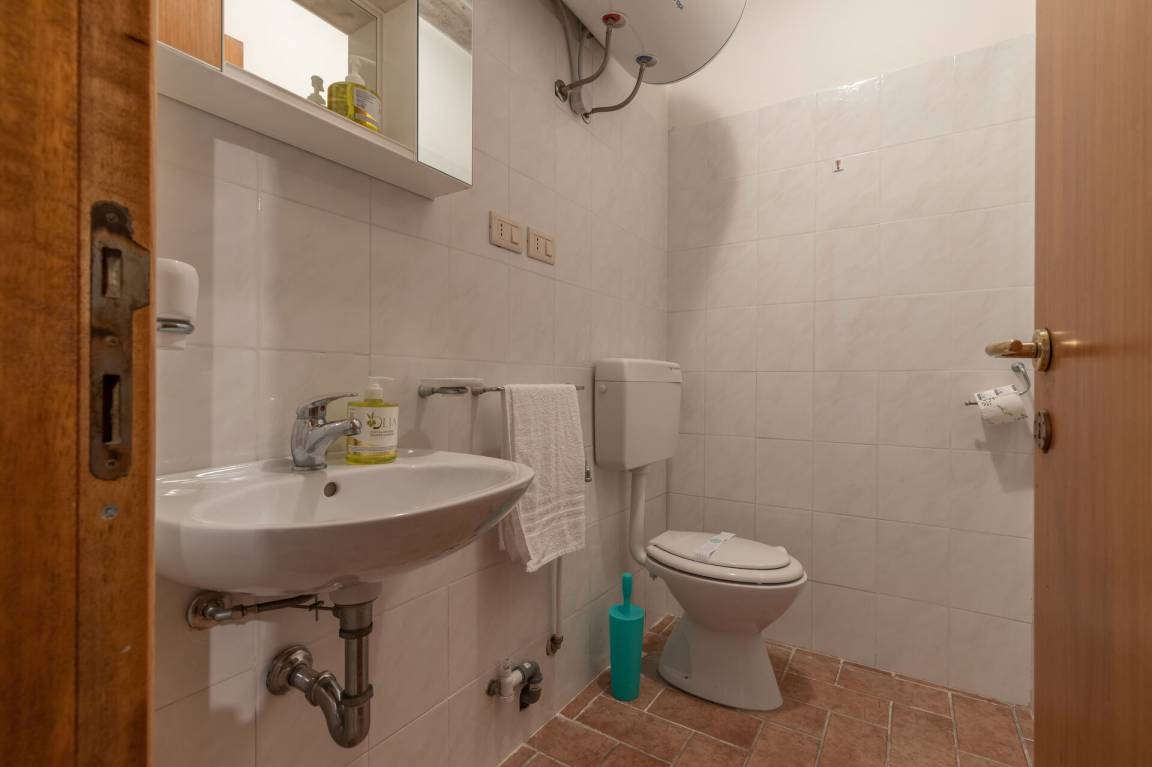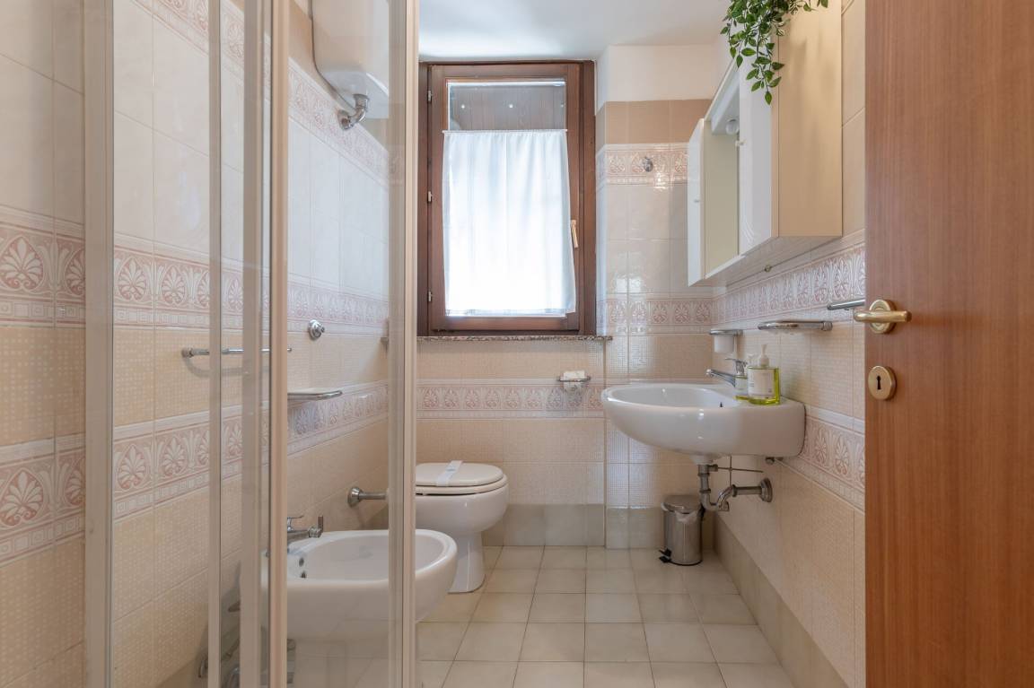 Badezimmer: Waschbecken, WC, Bidet, Dusche, Fön.