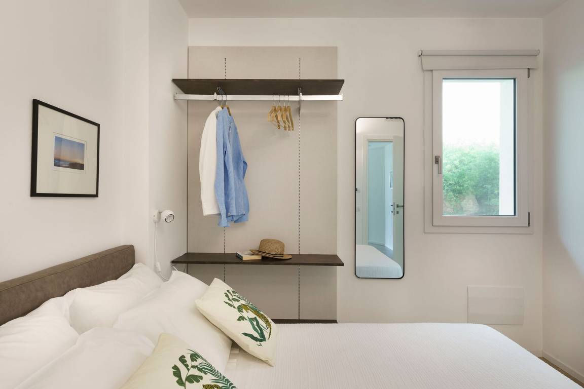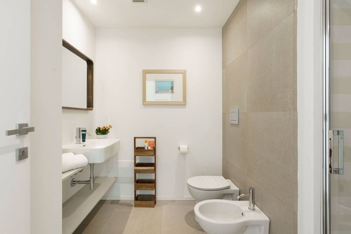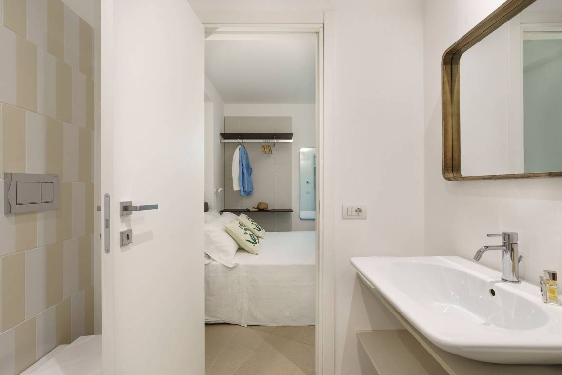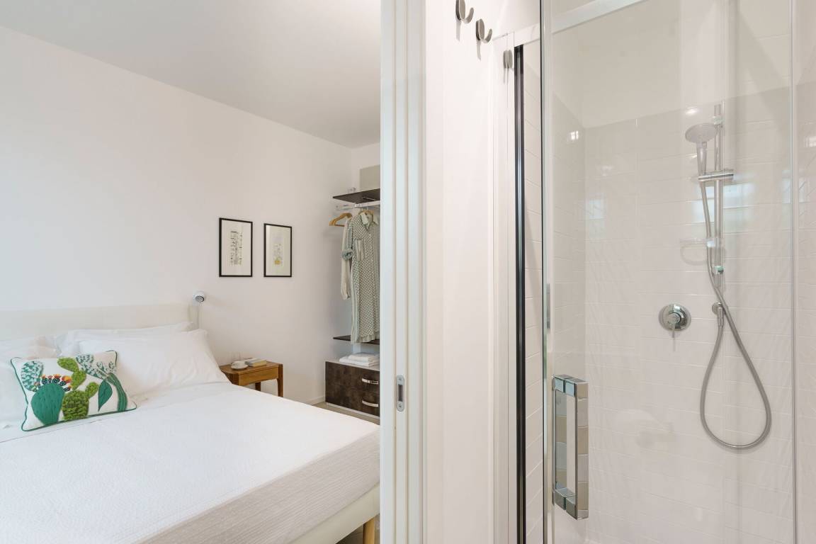 Schlafzimmer mit Bad 3: Doppelbett, WiFi Internet, Internet, Klimaanlage, Fliegengitter, Satelliten-TV, Waschbecken, WC, Bidet, Dusche, Fön, Badezimmer ohne Fenster.