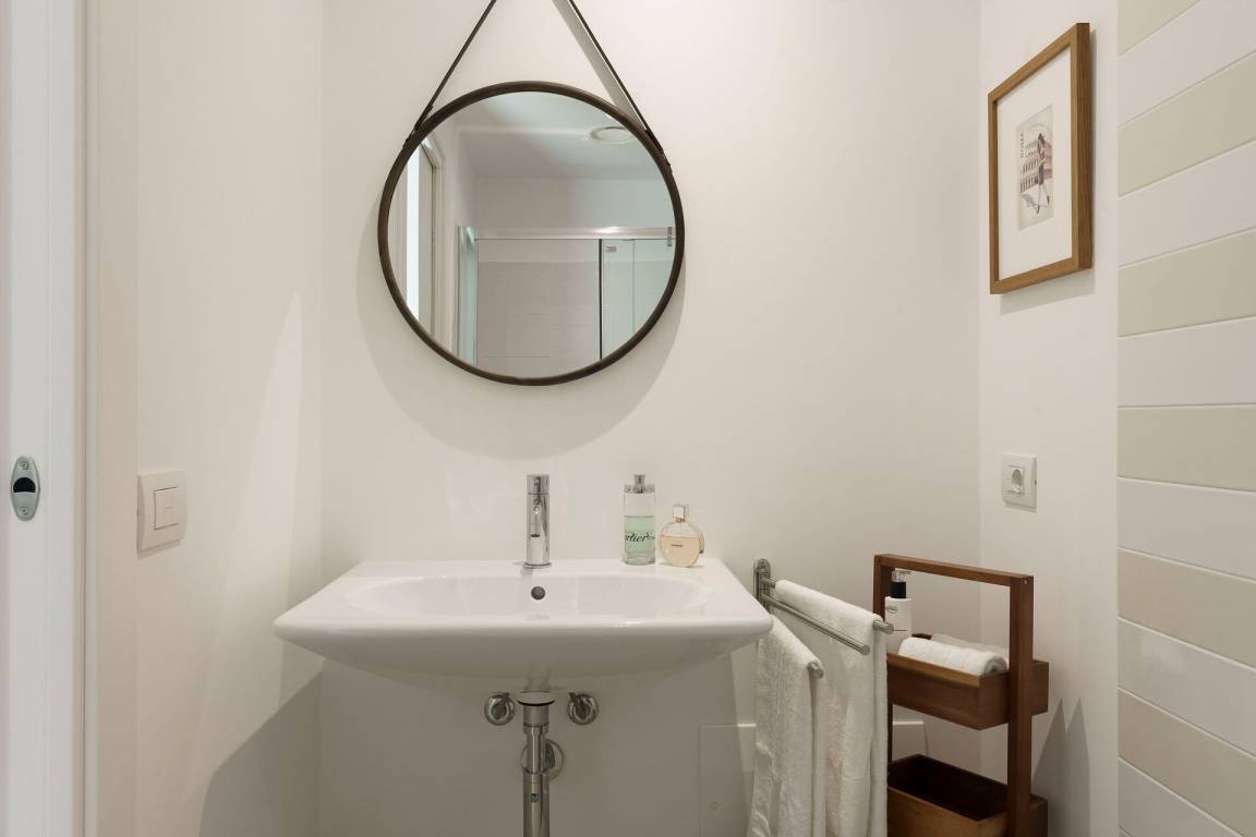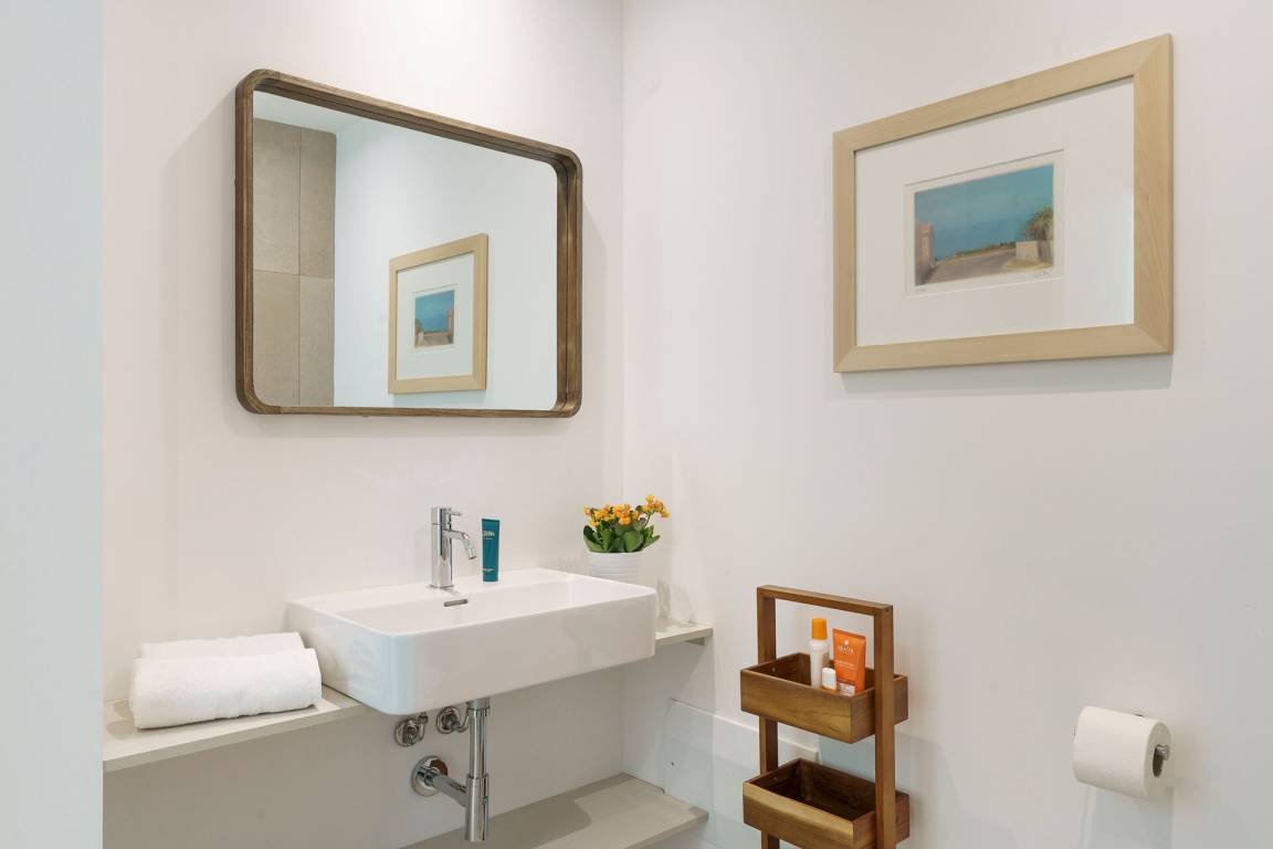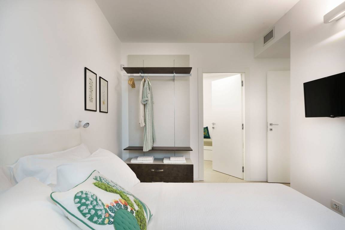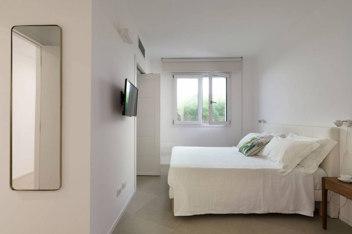 Schlafzimmer mit Bad 3: Doppelbett, WiFi Internet, Internet, Klimaanlage, Fliegengitter, Satelliten-TV, Waschbecken, WC, Bidet, Dusche, Fön, Badezimmer ohne Fenster.