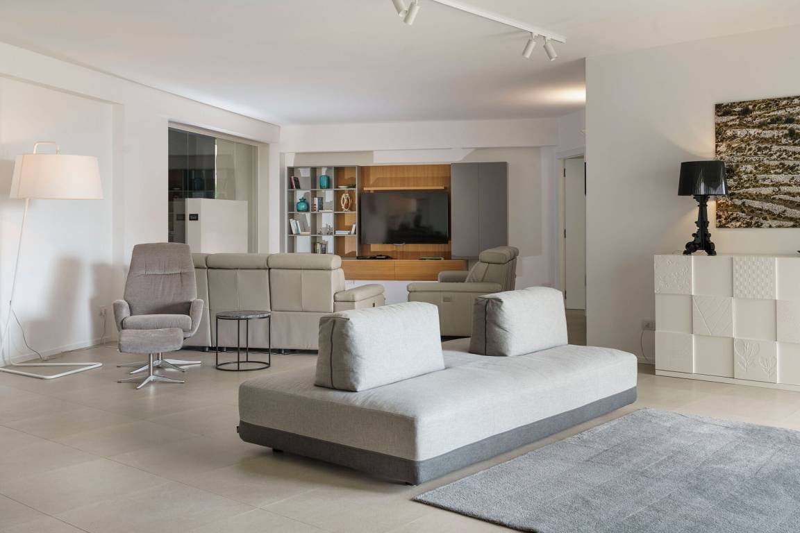 Wohnzimmer: drei Sofas (Personen: 12), Sessel, Kamin, WiFi Internet, Internet, Klimaanlage, Satelliten-TV, Fliegengitter, Ausgang auf die Terrasse.