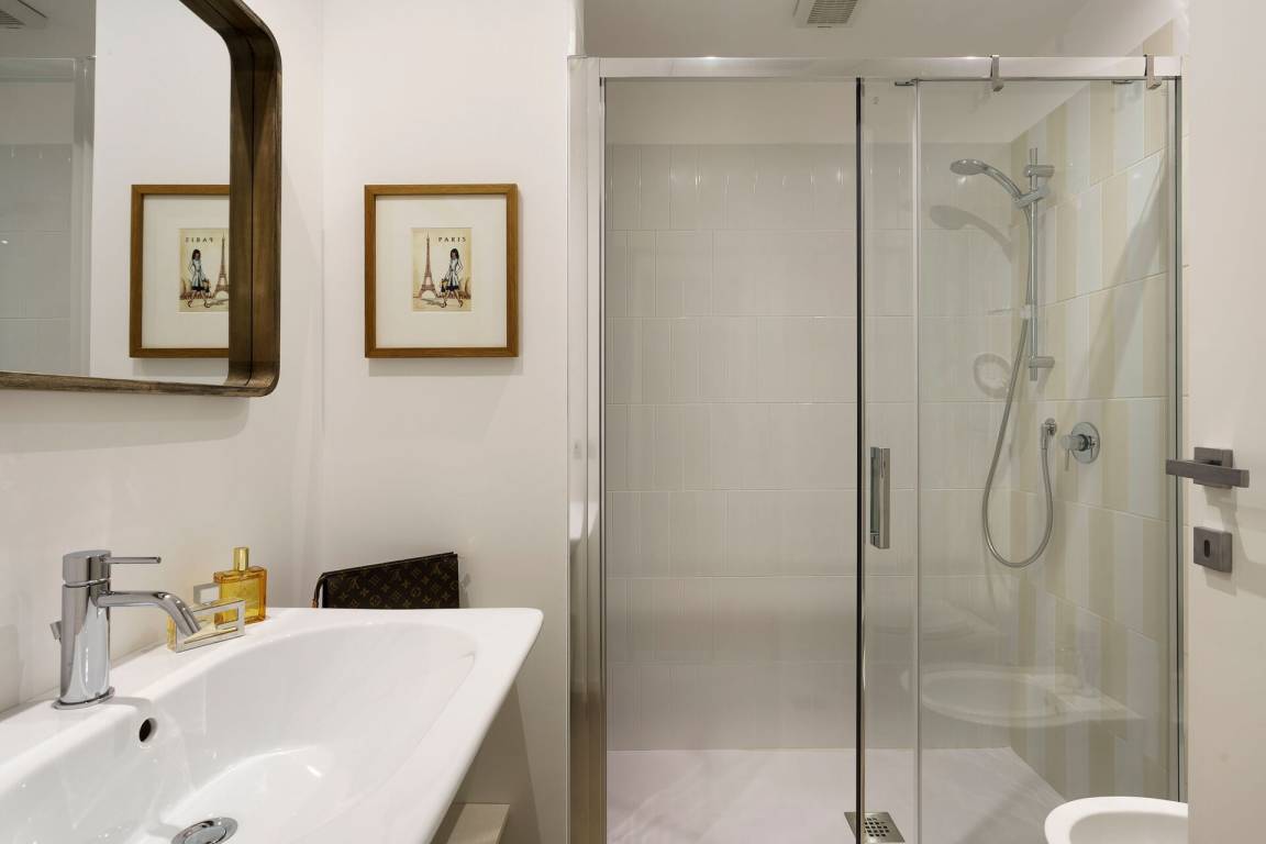 Schlafzimmer mit Bad 2: Doppelbett, WiFi Internet, Internet, Klimaanlage, Fliegengitter, Satelliten-TV, Waschbecken, WC, Bidet, Dusche, Fön, Badezimmer ohne Fenster.