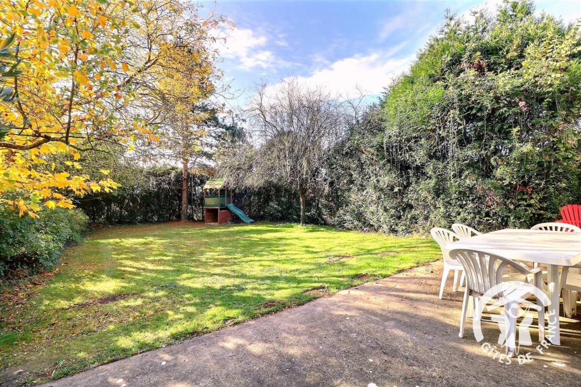 Angrenzendes Grundstück mit Gartenmöbeln und Grill.