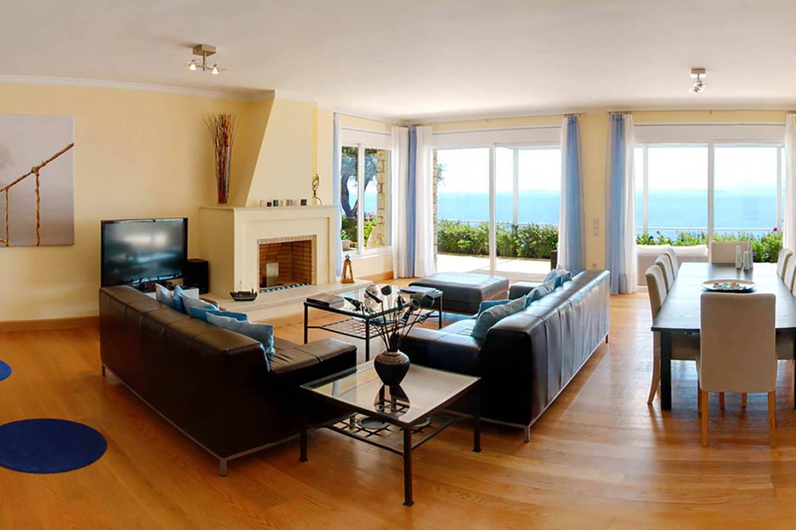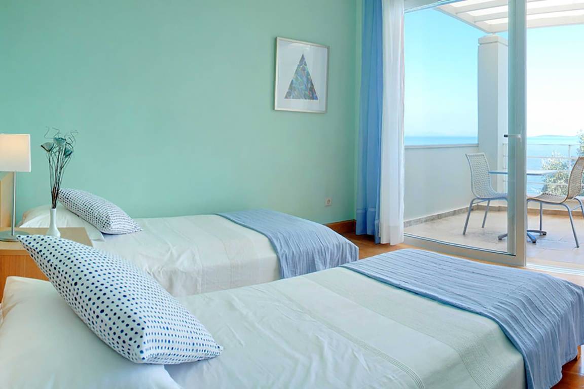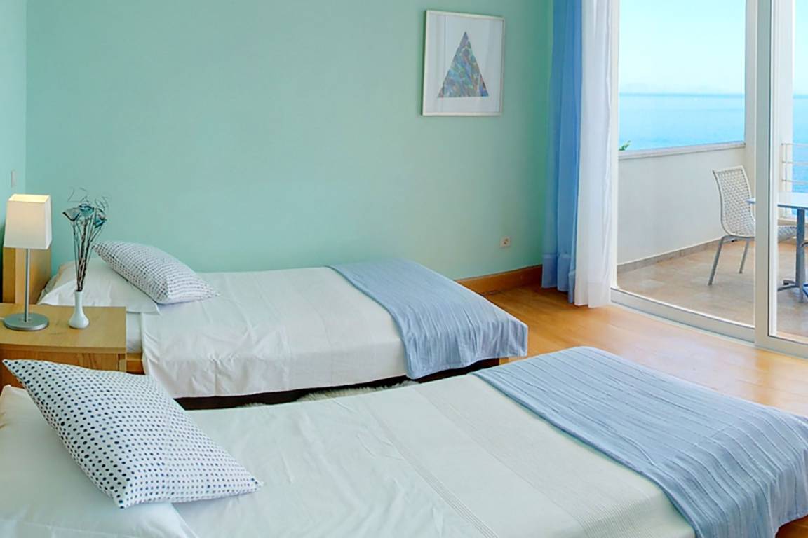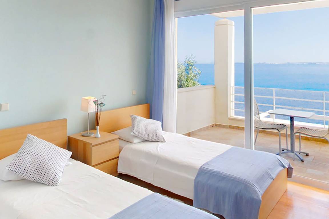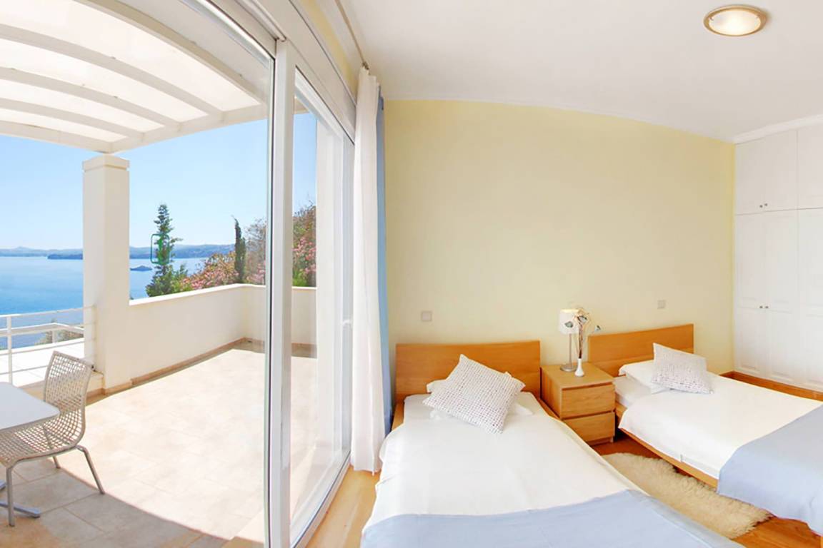 Die Villa umfasst 4 Schlafzimmer und 4 Bäder und bietet Platz für bis zu 8 Gäste. Die Räume sind über mehrere Geschosse verteilt und kombinieren großzügige Schlafbereiche mit Wohn- und Esszonen, die fließend ineinander übergehen.