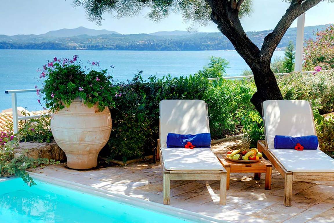 Die Villa ist eine unabhängige Struktur und verfügt über einen privaten Swimmingpool. Der Garten und die Außenbereiche bieten Meerblick.