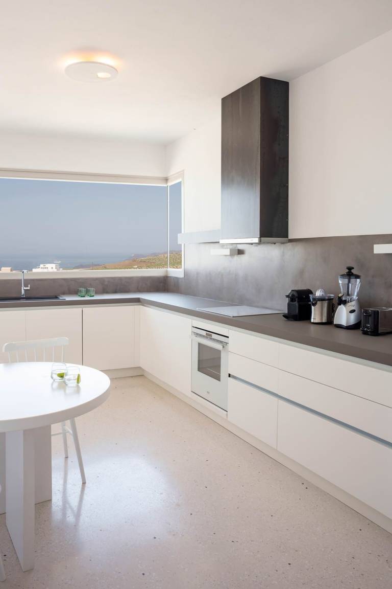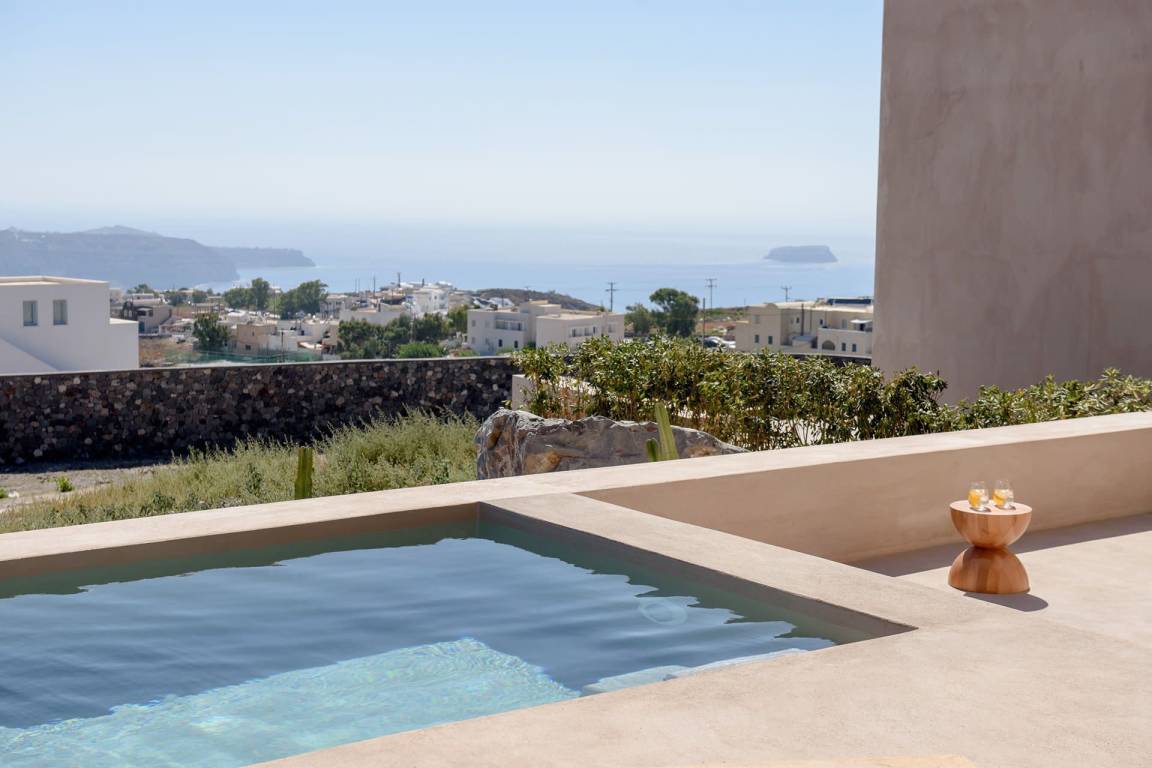 Die Villa Thera Prince umfasst 5 Schlafzimmer und 4 Bäder und bietet Platz für bis zu 10 Gäste. Die Räume verteilen sich über mehrere Ebenen und verbinden gehobenen Komfort mit der charakteristischen kykladischen Architektur. Jedes der 5 Schlafzimmer ist hochwertig möbliert und bietet großzügige Schlafmöglichkeiten für Paare und Familien. Die 4 Bäder sind elegant ausgestattet und gewährleisten allen Gästen einen hohen Komfort- und Privatspährenstandard während des Aufenthalts.