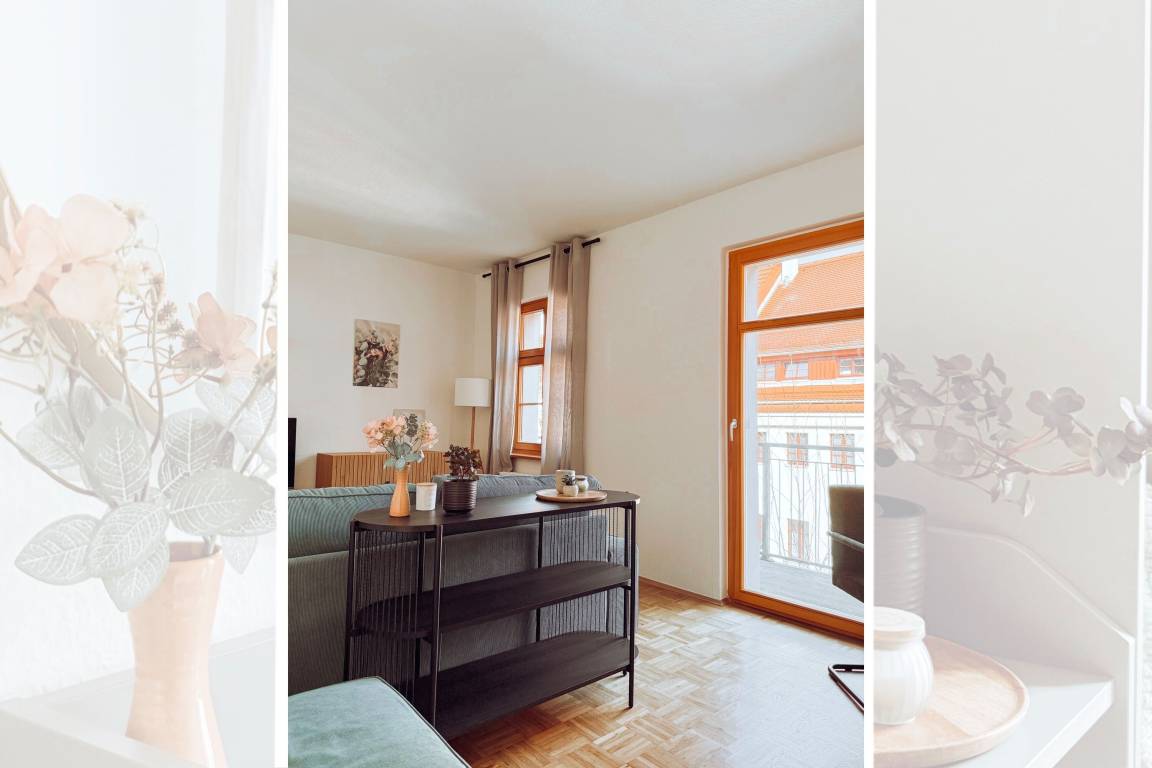 Willkommen in Ihrer geschmackvoll möblierten 3-Raum-Wohnung im Herzen der romantischen Altstadt von Pirna! Diese charmante Unterkunft bietet Platz für bis zu 3 Personen und ist ideal für Paare oder kleine Familien. Die Wohnung verfügt über zwei gemütliche Schlafzimmer, die mit stilvollen Möbeln und liebevollen Details ausgestattet sind, um Ihnen einen erholsamen Schlaf zu garantieren. Der separate Wohnbereich ist einladend gestaltet und bietet eine schöne Sitzgruppe, die perfekt für entspannte Abende oder gesellige Stunden ist. Ein besonderes Highlight ist der Balkon, auf dem Sie die frische Luft genießen und den Blick auf die malerische Altstadt werfen können. Hier können Sie den Tag mit einem Frühstück im Freien beginnen oder den Abend bei einem Glas Wein ausklingen lassen. Die Lage in der romantischen Altstadt ermöglicht es Ihnen, die charmanten Gassen.