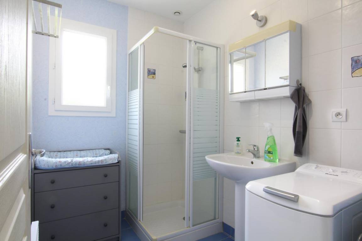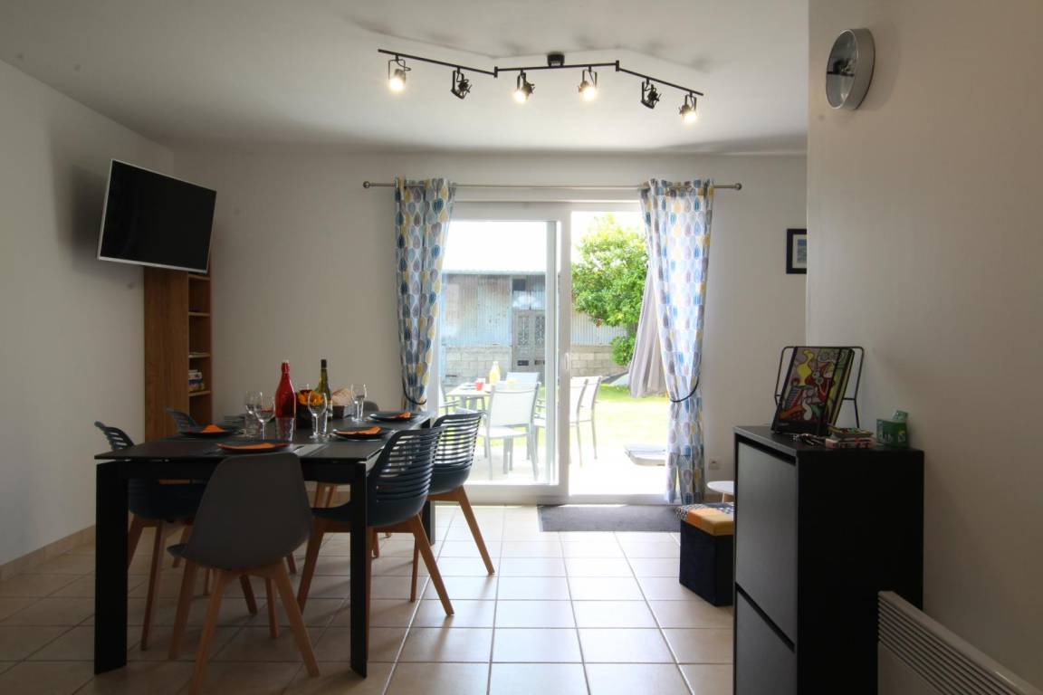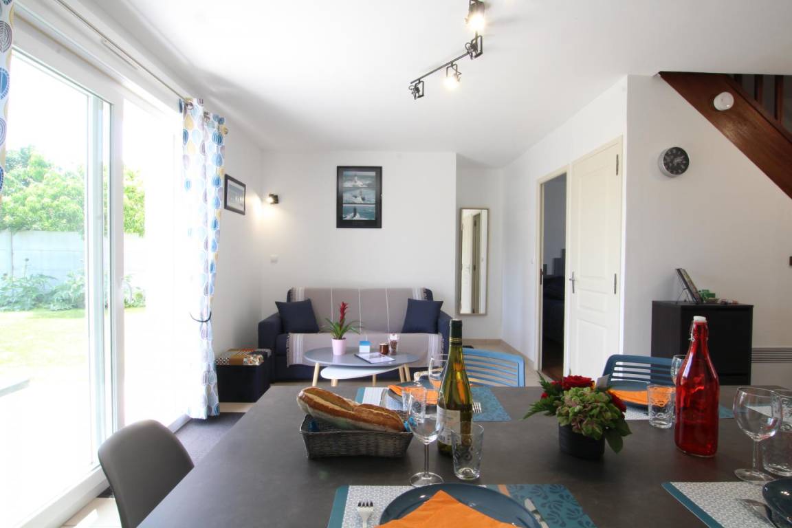 Freistehendes Haus. Erdgeschoss: Wohnzimmer (TV). Offene Küche/Wohnbereich (Geschirrspüler, Cerankochfeld, Mikrowelle, Backofen, Gefrierfach, Senseo-Kapsel- und Standard-Kaffeemaschine). Schlafzimmer 1: 1 Kingsize-Bett (180 x 200 cm). Duschbad (Waschbecken und Duschkabine). Separates WC. Obergeschoss: Schlafzimmer 2: 2 Einzelbetten (100 x 200 cm). Schlafzimmer 3: 1 Doppelbett (140 x 190 cm). Kindersicherheitsgitter, Hochstuhl, Kinderbett und Babywippe auf Anfrage. Eingezäunter Garten mit Tor. Terrasse. Gartenmöbel. Sonnenliegen. Grill. Unterstand. Offener Carport am Eingang für ein Fahrzeug. Fahrräder (3 Erwachsenen- und 2 Kinderfahrräder). Strandspiele. Waschmaschine. Elektrische Heizung inklusive. Bettwäsche und Handtücher gegen Gebühr. Reinigung optional. WLAN.