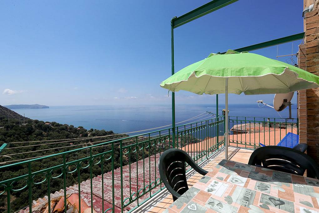 Von den beiden Balkonen der Casa Marida bietet sich ein herrlicher Panoramablick, der über die terrakottafarbenen Dächer Pisciottas und die silbrig-grün schimmernden Olivenhaine bis zum Meer und zum Kap von Palinuro reicht. Im Inneren der Ferienwohnung schaffen über 4 m hohe Räume und die 100 qm umfassende Wohnfläche ein großzügiges Ambiente.