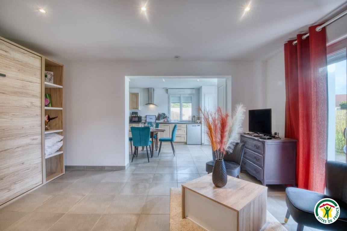 Einstöckiges Studio-Gîte mit sanftem Gefälle am Eingang und angepasster Türbreite: