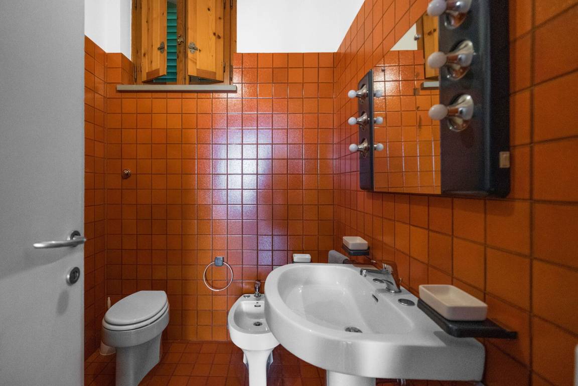 Badezimmer: Waschbecken, WC, Bidet, Dusche, Fön, WiFi Internet.