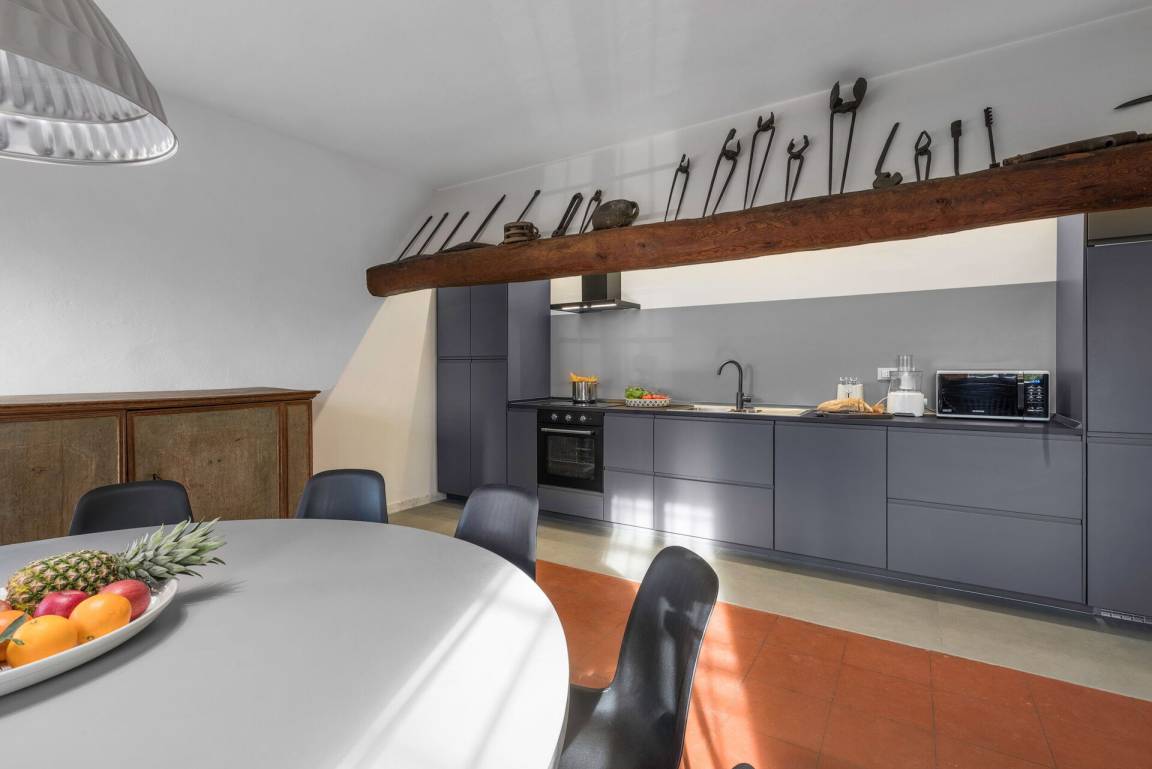 Wohnküche: gut ausgestattete Küche, Esstisch, Kühlschrank, Tiefkühler, Ofen, Italienische Kaffeemaschine, Sofa, WiFi Internet.