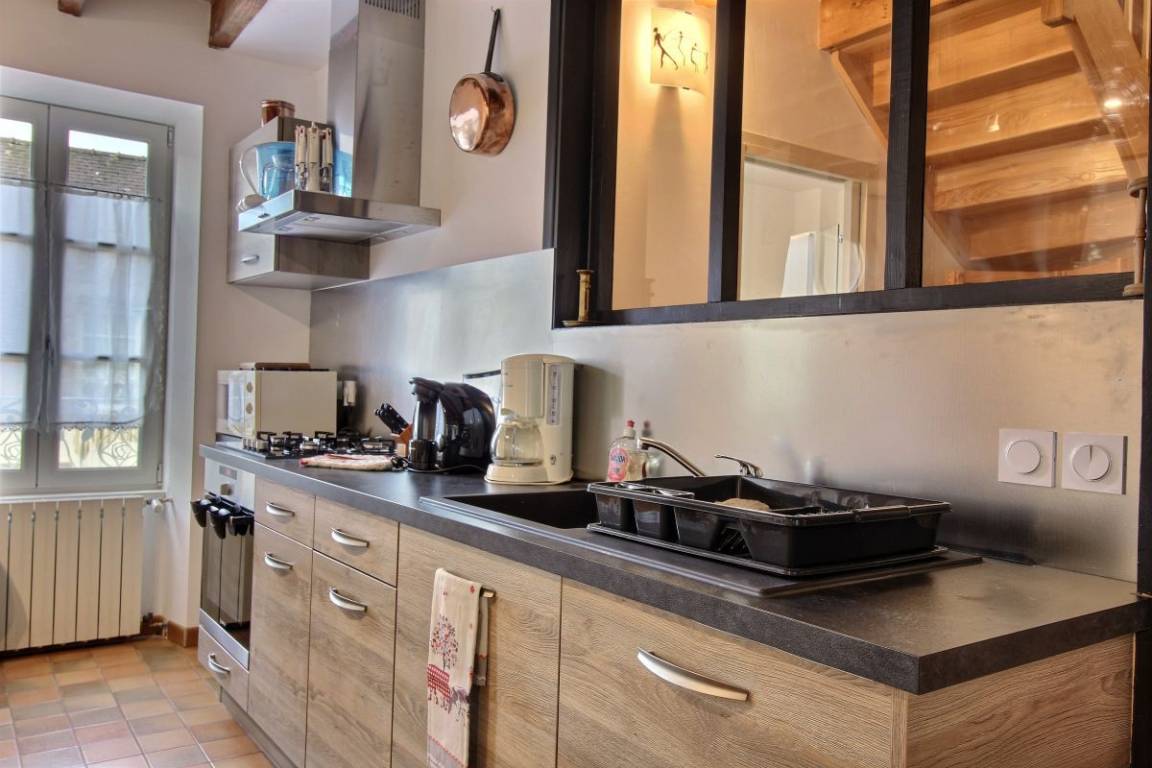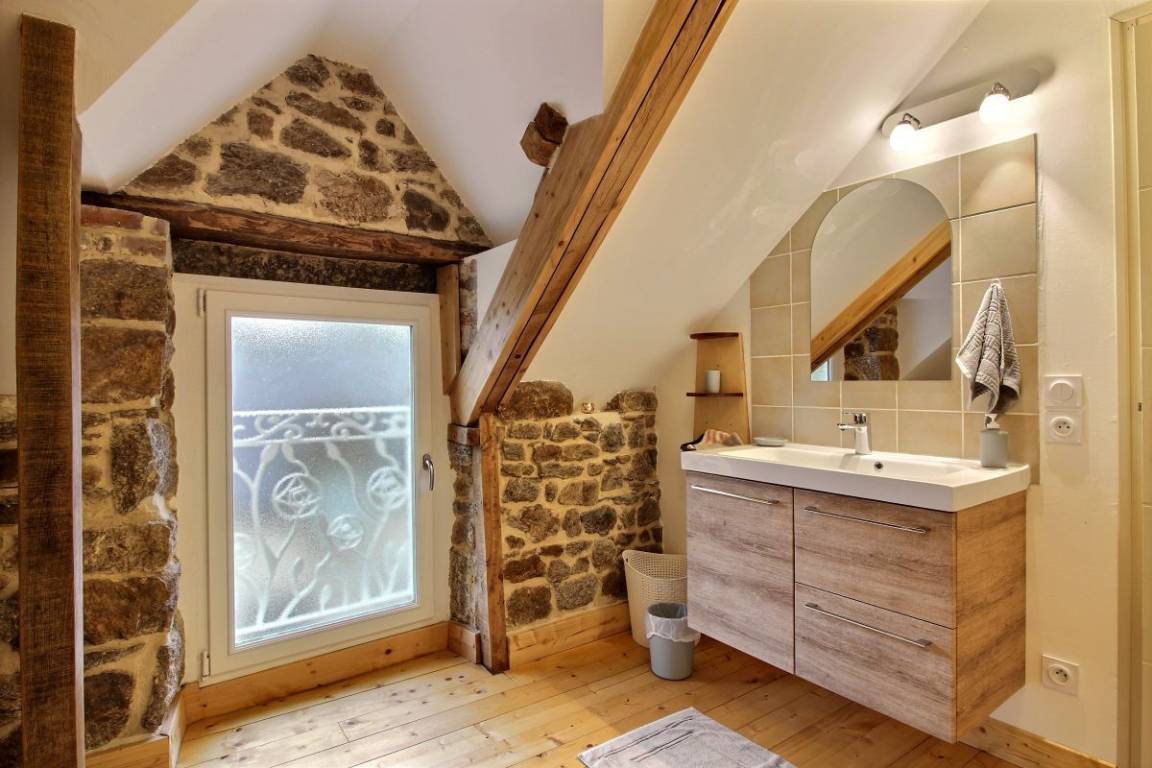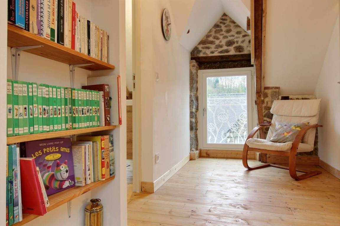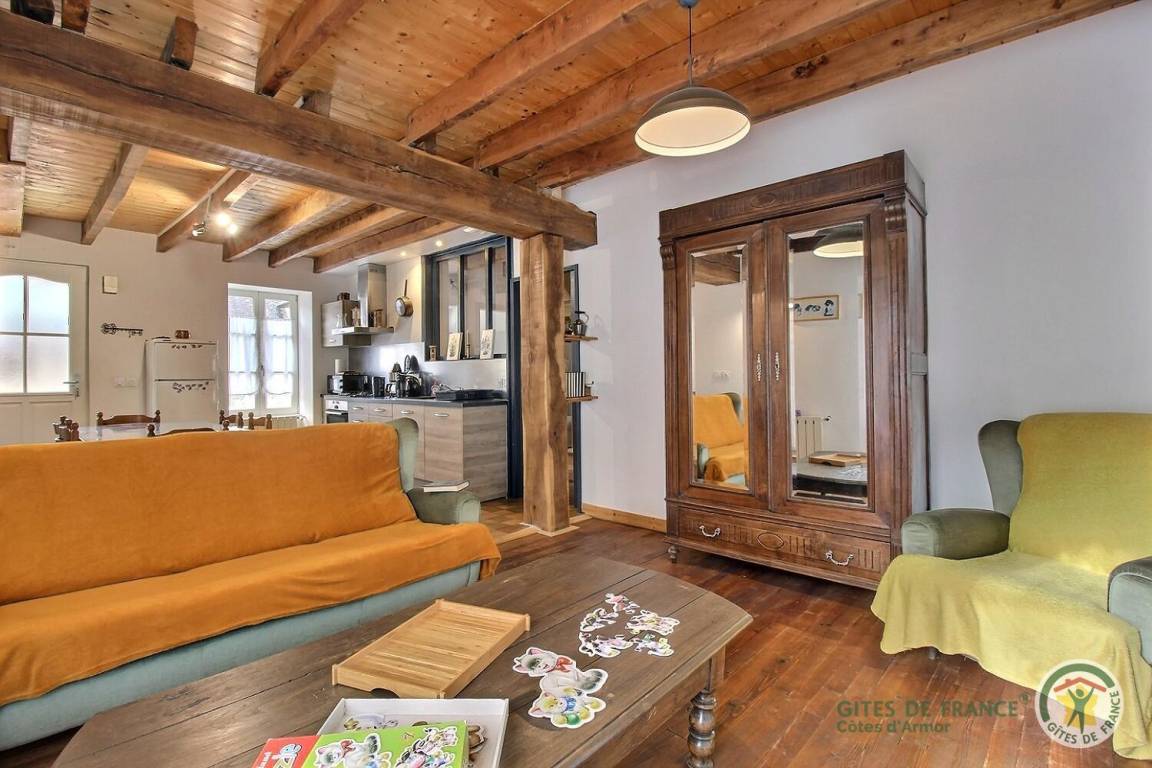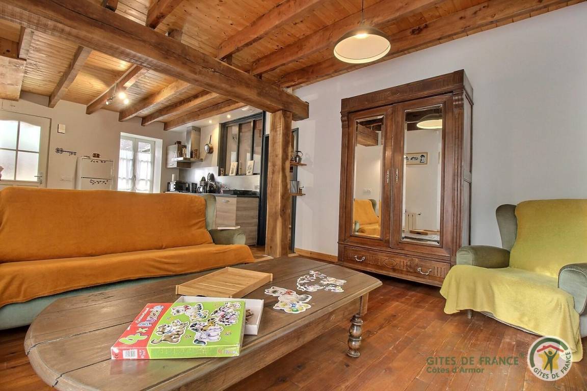 Ihre Ferienwohnung umfasst im Hochparterre: ein Wohnzimmer mit Küchenbereich, der sich zum Innenhof und zur Gartenseite hin öffnet, ein Schlafzimmer (1 Doppelbett 140X190), ein Badezimmer mit großer italienischer Dusche und WC. Im Obergeschoss: 1 großes Schlafzimmer (3 Einzelbetten: 1x90x190 und 2x80x200, umwandelbar in 1 160x200-Bett), ein Badezimmer mit Badewanne, eine separate Toilette, ein Ruhebereich mit Spielen und Lesematerial. Heizung durch Holzpelletkessel, automatische Beschickung. Im Nordwesten befindet sich der gemeinsame Innenhof mit 1 Parkplatz für die Gîte. Hinter dem Ferienhaus im Südosten und mit sicherem Zugang erwartet Sie eine 26 m² große Terrasse. Sobald Sie das Tor hinter sich gelassen haben, entdecken Sie den gemeinsamen Garten der Eigentümer: eine kleine Insel zwischen Le Gouët und der Mühle. Hier finden Sie Spiele für Kinder, Baumhäuser...