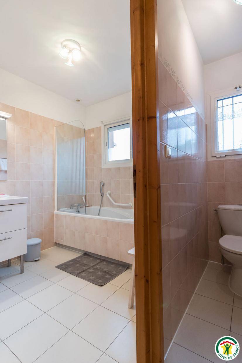 „Maison spacieuse entièrement de plein pied. Un jardin boisé qui entoure toute la maison Sans vis à vis. L’endroit idéal pour décompresser. Nous avons également apprécié les nombreux jeux mis à disposition et l’accueil de la propriétaire vraiment sympathique. A recommander les yeux fermés“