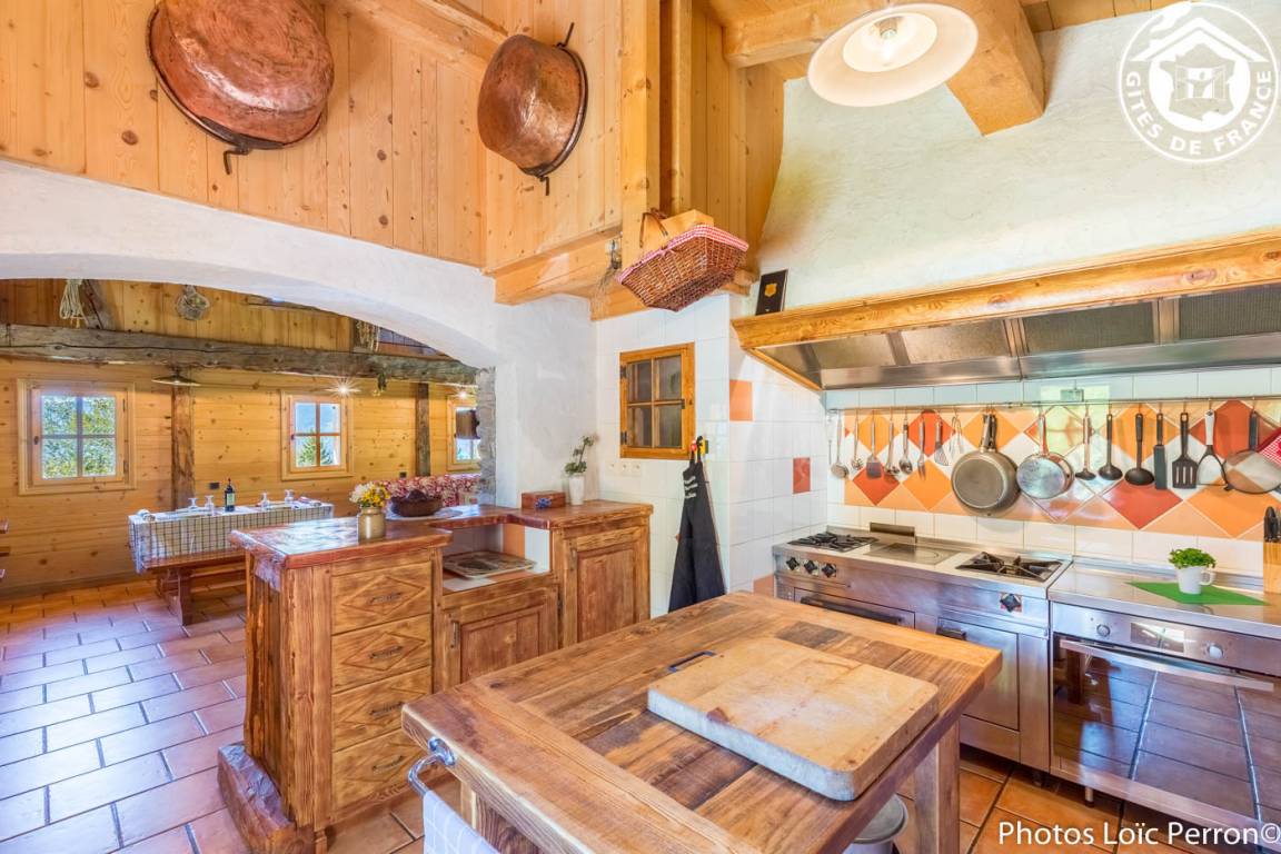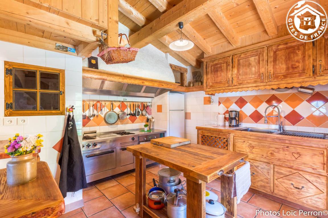 „Châlet situé au calme dans un très bel endroit avec jolie vue. Le chalet était propre. Cuisine avec strict nécessaire. Une armoire est difficile d'accès, trop haute. Cuisson au gaz. On a apprécié le chauffage au sol. Le feu ouvert était appréciable mais la fumée s'evacue difficilement malgré une fenêtre ouverte, et donc dérangeant pour certaines personnes: Toux, asthme...Le propriétaire est très stressé... il faut faire attention à tout, être économe, il met la pression...Très peu d'intimité au niveau des chambres et de la salle de bain, espace nuit très petit pour 10 personnes...Le parking est situé entre 600 et 700m du châlet.“