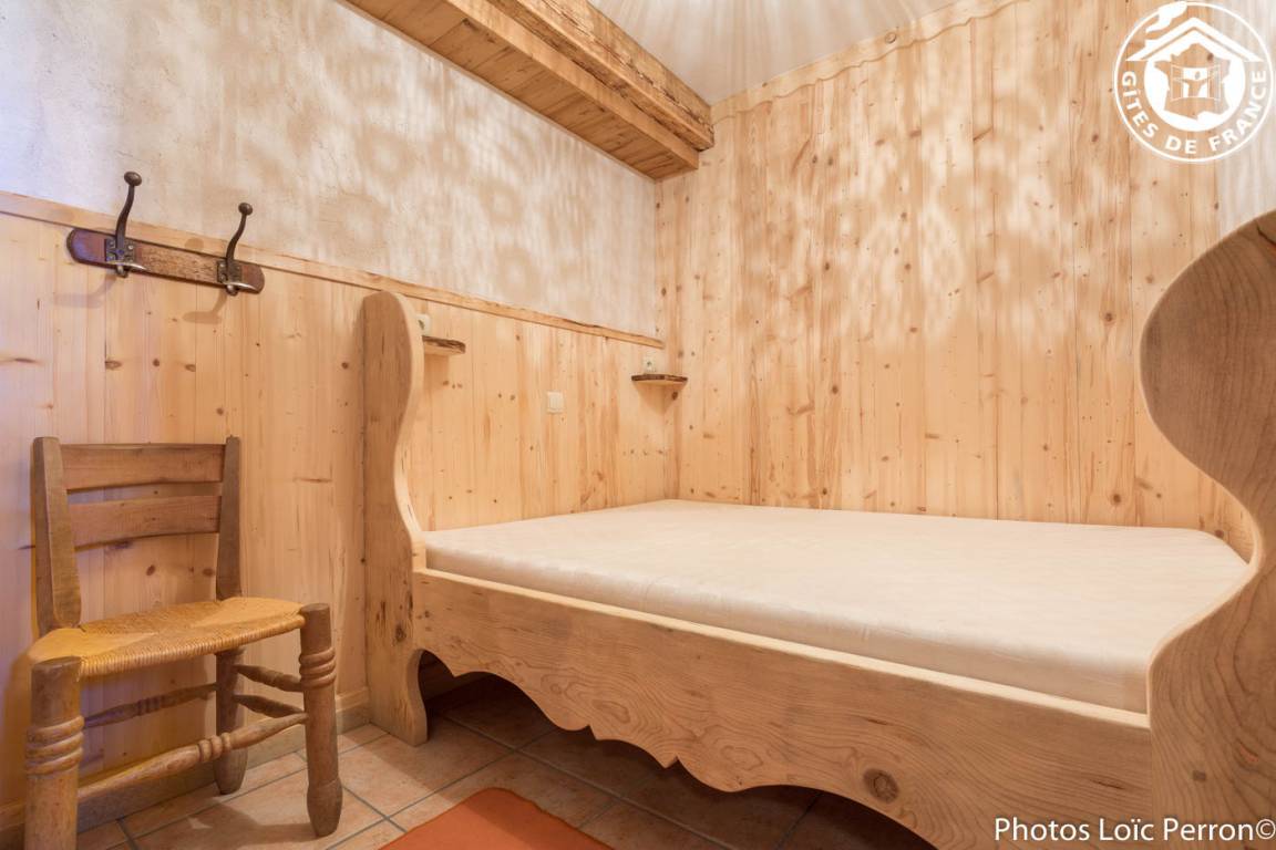 Individuelles Chalet auf 2 Ebenen (Zufahrt zum Chalet im Sommer über 500 m gepflasterte Straße, im Winter nur mit Schneeschuhen oder Skiern). Wohnzimmer-Küche-Lounge, 3 „Kabinen"-Schlafzimmer ohne Durchgang nach außen, eingerichtet im „Hirtenhütten"-Stil (3 x 1 Doppelbett 140 x 190 cm), Doppelnischen in einem großen „Korridor"-Bereich mit „Betten" „Traditionelles Hirtenbett" (2 x 2 Einzelbetten, Etagenbett in 130x190cm oder 4 Einzelbetten). Großes Badezimmer (2 unabhängige Duschen). Terrasse + flaches Grundstück. Riesiges Privatgrundstück von 4 ha (Wälder und Wiesen). Skigebiet Champagny-en-Vanoise/Paradiski-Gebiet 10 km, Pralognan-la-Vanoise 11 km, Courchevel/3 Vallées 22 km, Zugang nach Méribel/3 Vallées 20 km (mit Seilbahnverbindung von Brides-les-Bains). Langlaufloipe Pralognan-la-Vanoise 11 km. Eisbahn 11 km. Schwimmbad 10 km. Erschlossenes Gewässer & Freizeitzentrum 13 km. Thermalbäder von Brides-les-Bains 20 km.