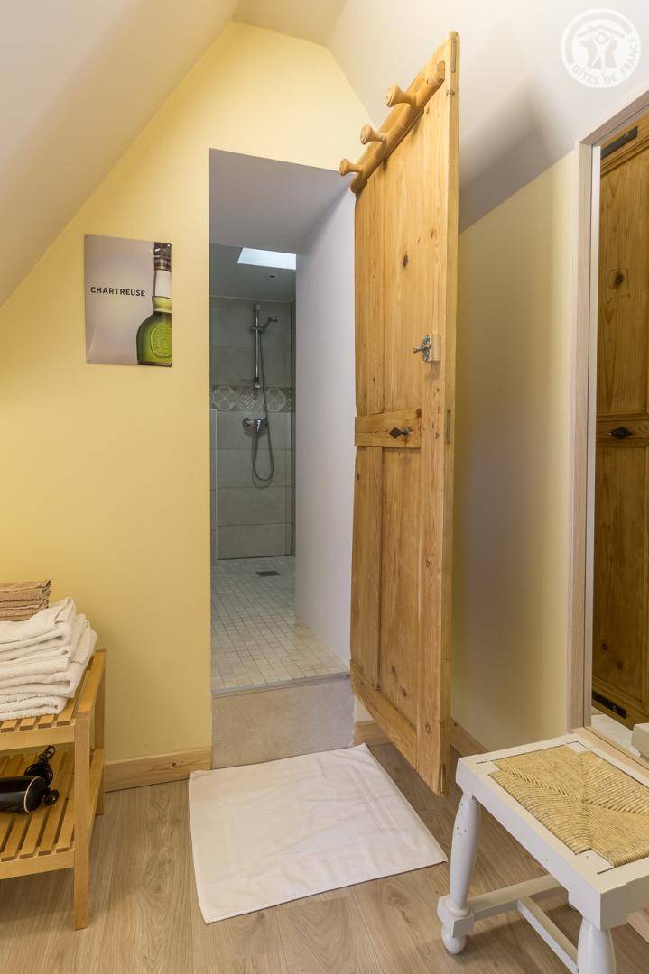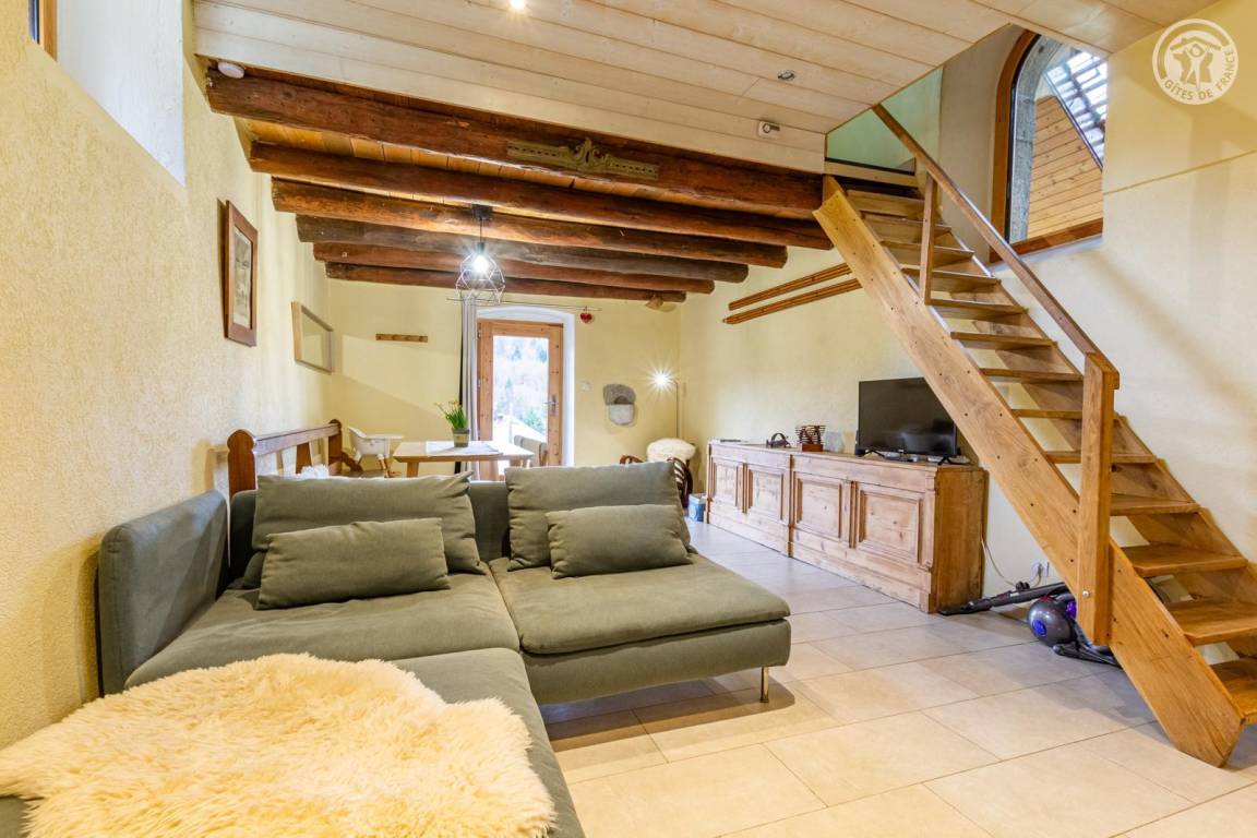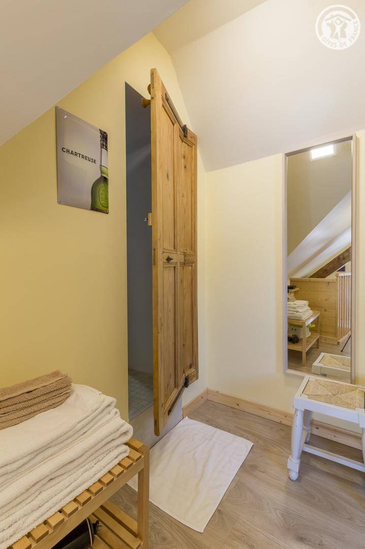 Kleine Kapelle auf 2 Etagen, zu einer Wohnung umgebaut: Vom Garten und der Terrasse aus Zugang zum Wohnzimmer im Erdgeschoss mit Sitzecke, Essbereich und Küchenzeile. Im 1. Stock: 2 Schlafzimmer (1 Bett 140x190 cm / 1 Bett 140x190 cm), Badezimmer (Dusche und Toilette). Alles inklusive (Bettwäsche und Reinigung). Der Zugang erfolgt über einen kleinen Pfad, der entlang der Wiesen ansteigt (der Parkplatz liegt unterhalb, auf der Höhe des Weilers). Fernsehbildschirm und Chromecast (zum Streamen Ihrer Medien und Netflix-Konten...) (der Fernseher empfängt nicht die üblichen Kanäle).