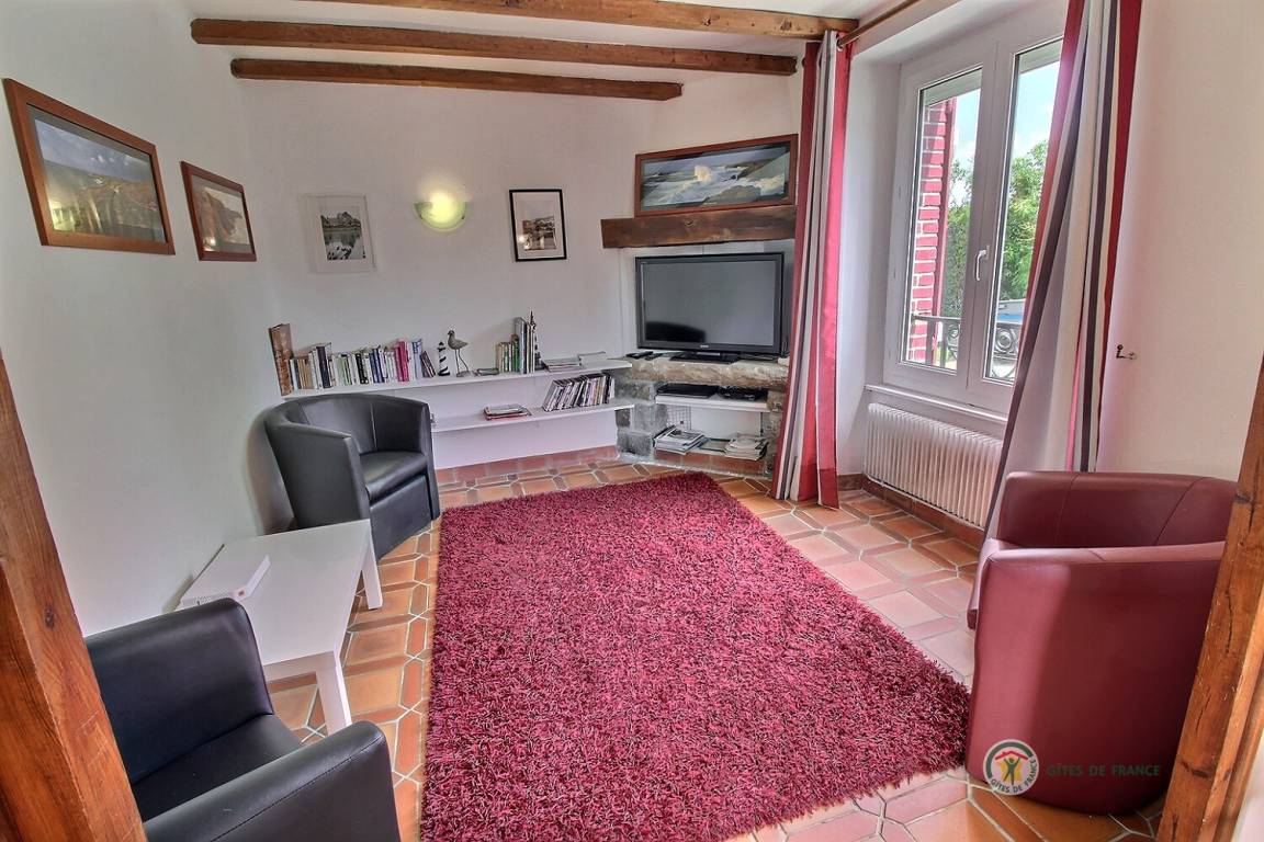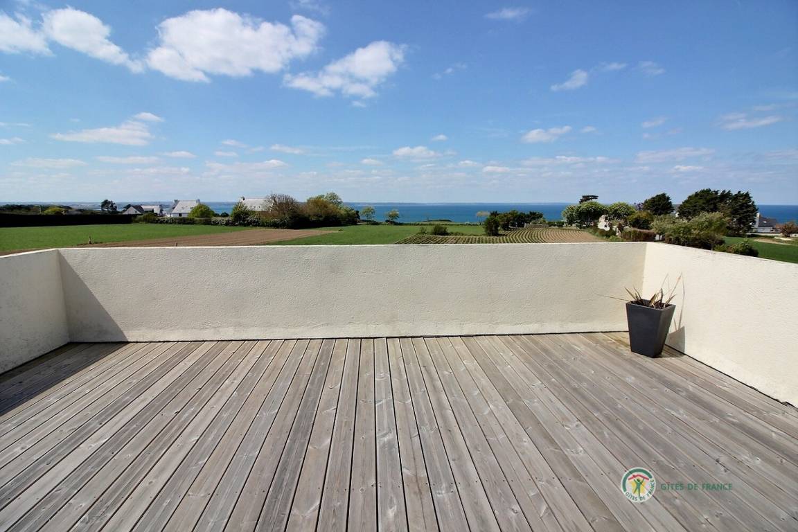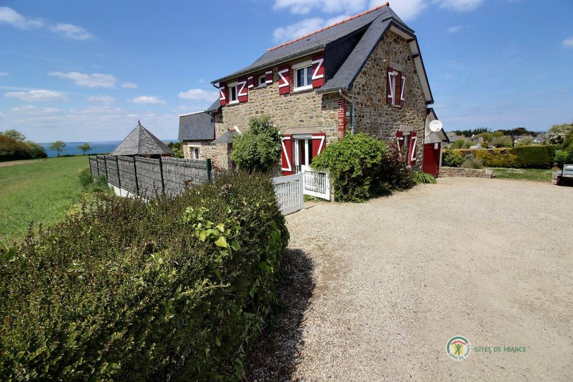Einzelstehender Gite, im Eingangsbereich eines Weilers gelegen, mit abgeschlossenem Hof und Grünfläche, Terrasse. Erdgeschoss: Küche, Esszimmer, Wohnzimmer, Abstellkammer, Bade-Zi. und WC.: Etage: 4 Schlaf-Zi. (1 mit eigener Terrasse mit Blick auf die Bucht von St-Brieuc) (1 Doppelbett, 4 Einzelbetten, 1 Babybett), Bade-Zi. und WC. Pauschalgebühr für Heizung 10€/Tag.