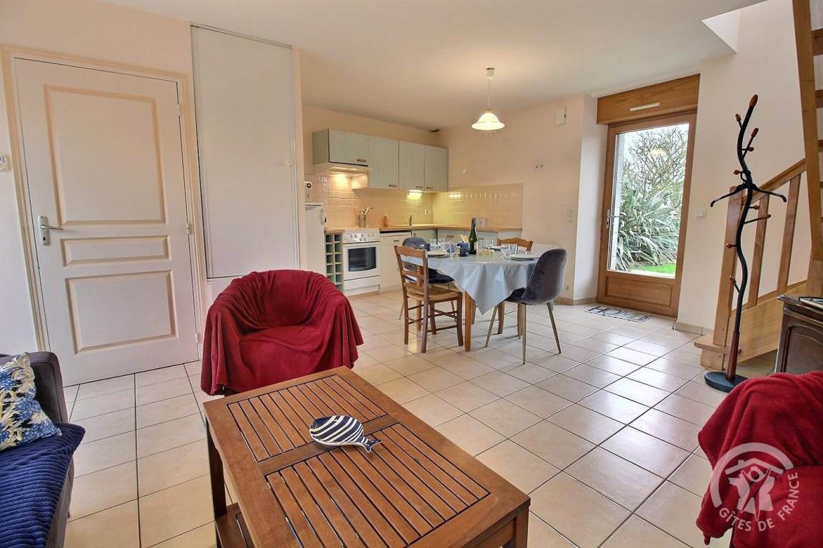 Dieses Ferienhausangebot enthält: Im Erdgeschoss: einen Ess- Wohnraum mit Einbauküchenecke, ein WC. Im 1. Stock: 2 Schlafzimmer (1 Bett x 2 Personen) (2 Zwillingsbetten x 1 Person = 1 Bett x 2 Personen), ein Dusch-Badezimmer mit WC. Babyausstattung vorhanden. Haustiere kostenlos zugelassen.