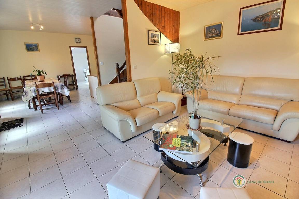 Dieses Ferienhausangebot enthält: Im Erdgeschoss: einen Vorraum, eine ausgestattete Küche mit Essbereich, ein Wohnzimmer (Kamin), 2 Schlafzimmer (2 Betten x 1 Person 90 cm) (1 Bett x 2 Personen 160x200), ein Badezimmer mit Dusche, WC. Im 1. Stock: 3 Schlafzimmer (1 Bett x 2 Personen, 3 Betten x 1 Person 90 cm, 1 Babybett + weitere Ausstattung), ein Badezimmer mit Badewanne, WC. Eine Veranda. SONDERANGEBOTE außerhalb der Schulferien: für 2 Wochen=7% Rabatt, für 3 Wochen=10% Rabatt.