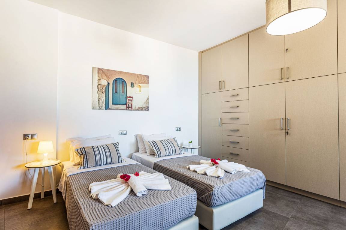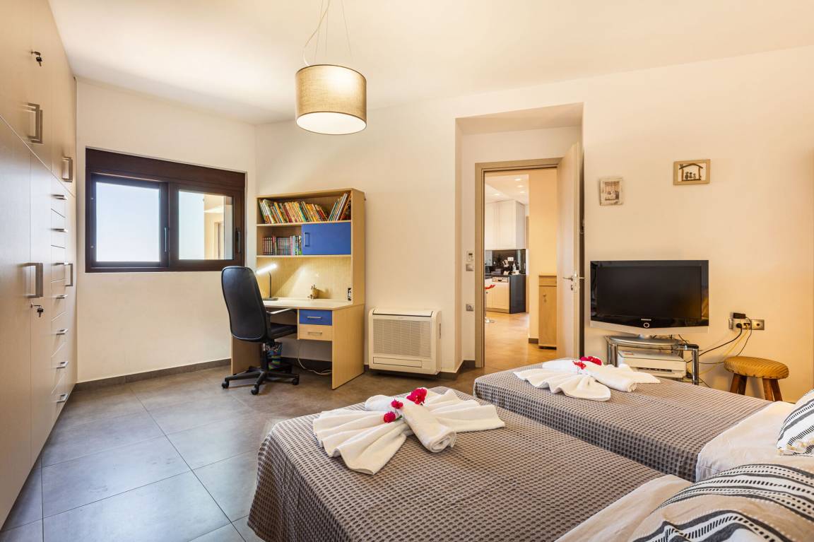 Schlafzimmer: zwei Einzelbetten, Klimaanlage, TV.