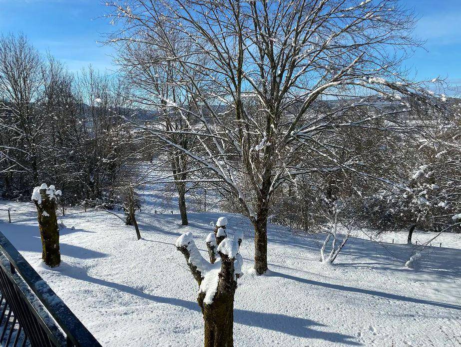 „Mooi huis op een fijne plek, grote tuin met veel bomen. Serre was onze favoriete plek.. Paar dagen gewerkt, genoeg ruimte en goede wifi. Omgeving is erg mooi om te wandelen, veel keuze en diversiteit aan routes. Eigenaren zijn erg vriendelijk. Enige nadeel is geluid van de verwarming. Huis is zeer schoon, veel is nog nieuw.“