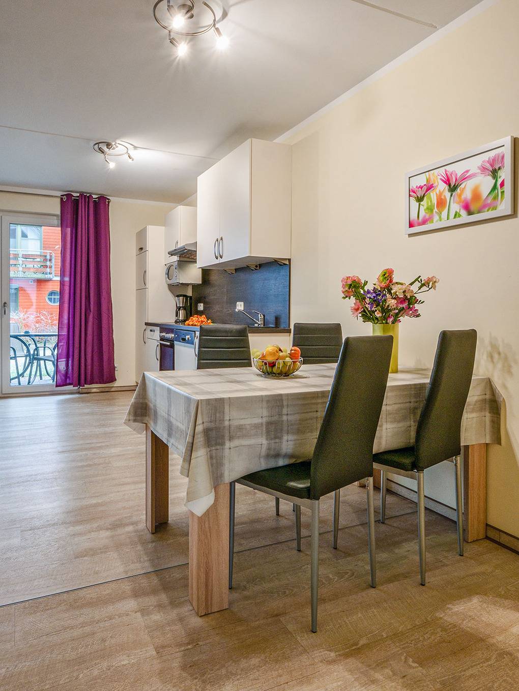 Nebenkosten 20 €/Tag (werden bei Buchung erhoben). Endreinigung 280 € (wird bei Buchung erhoben). Kurtaxe wird vor Ort bezahlt. Bettwäsche vorhanden. Handtücher leihbar 10 €/Pers (Bestellung). Zusätzliche Leistungen: Kostenloser Internetzugang über W-Lan. 2 Pkw-Stellplätze im Preis inklusive, weiterer Stellplatz ca. 5 €/Tag. Kaution 400 €. Kinder: Babybett nur innerhalb der maximalen Personenzahl 15 €/Aufenthalt (Bestellung). Hochstuhl 5 €/Aufenthalt (Bestellung). Haustier nicht erlaubt.Räume & Aufteilung
