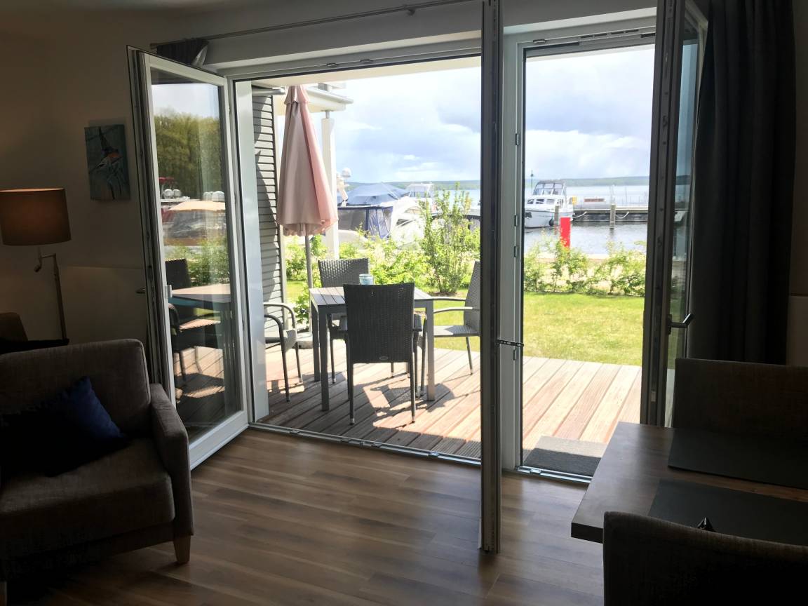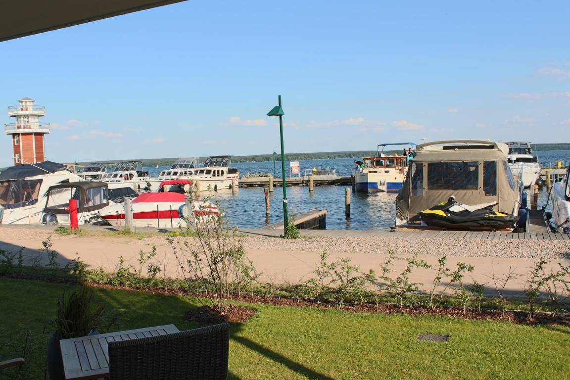 Direkt aus der Wohnung im Erdgeschoss mit Terrasse und Garten zum Süden genießen Sie den einmaligen Blick auf den Hafen und den Plauer See. Ausgestattet ist die Wohnung mit Fußboden in Holzoptik, Fußbodenheizung und Kamin. Sie verfügt über elektrische Insektenschutzgitter an allen Außentüren und Fenstern. Internet und WLAN sind im Preis enthalten.