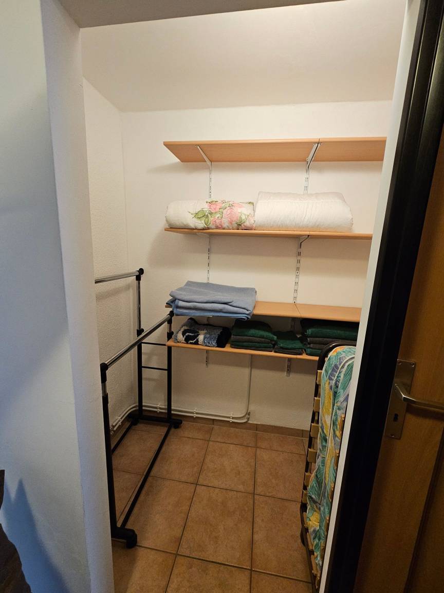Doppelbett, Nachtschrank, Flachbildferseher, begehbarer Schrank