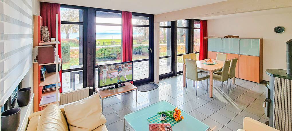 D 47.1 Ferienhaus 3-6 Pers.: 4-Zimmerhaus, 100 qm Wohnfläche. Parterre: Exklusiv eingerichteter, heller Wohn-/Essraum mit Kamin, hochwertiger Sitzecke in modernem italienischen Design, Sat-TV, Radio, Telefon, Esstisch, moderner Einbauküche (Backofen, Spülmaschine, Mikrowelle). Doppelzimmer. Bad mit Sauna, Du, Wb, WC. 1. Etage: Großes Doppelzimmer mit Blick auf den Plauer See, gemütlicher Sitzecke. 2-Bettzimmer. Exklusives Bad mit Whirlpool, Wb, WC.