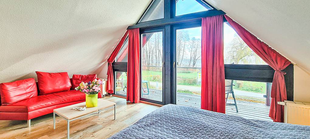 Haus: Exklusive Ferienhäuser mit Sauna und Kamin. Jedes als modernes Atelierhaus konzipiert mit interessanter, lichtdurchfluteter Architektur durch große Glasgiebelfront. Alle Ferienhäuser mit hochwertiger Möblierung, Whirlpool, Waschmaschine. Gas-Zentralheizung, teilweise Fußbodenheizung. Terrasse mit Sitzmöbeln. 1 Pkw-Stellplatz am Haus. Weitere Parkplätze nur 50 m vom Haus entfernt.
