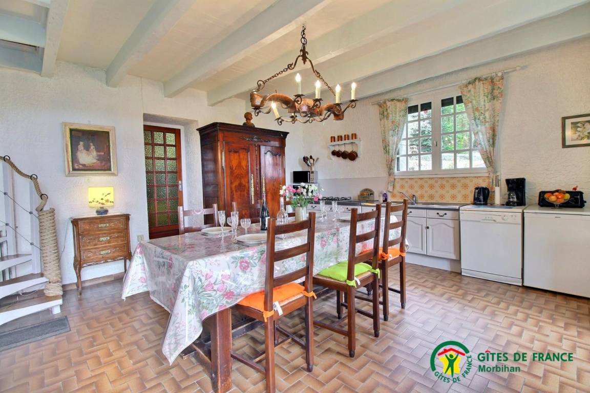 Eingebettet in einen kleinen Weiler in einer Sackgasse ist dieses traditionelle Ferienhaus sehr gut ausgestattet und bietet mit seinen schönen alten Möbeln und Balken eine angenehme und charmante Atmosphäre. Das Ferienhaus bietet Ihnen im Erdgeschoss: ein 50 m² großes Wohnzimmer mit Einbauküche, Wohnzimmer und Wohnzimmer sowie einen Waschraum mit Toilette, der über wenige Stufen erreichbar ist. Im 1. Stock: 1 Schlafzimmer mit 1 Doppelbett, 1 Schlafzimmer mit 2 Betten (für 1 Person) und ein Badezimmer mit WC. Das Haus lässt Sie eine ruhige Umgebung mit seinem blühenden und bewaldeten Park, seiner Terrasse mit einem schönen Blick auf die umliegende Landschaft genießen. Bowling Green auf dem Grundstück, überdachter Carport. Leicht steile Treppe.