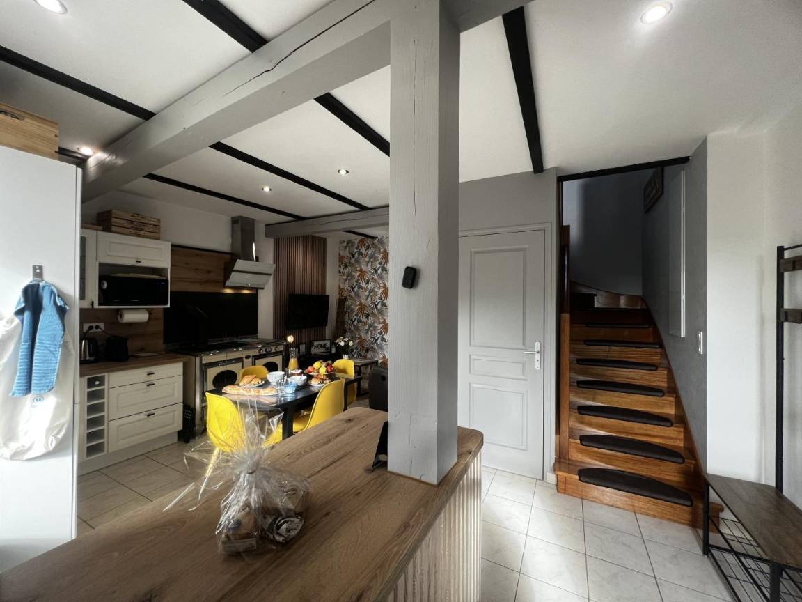 Ihre Ferienwohnung umfasst im Erdgeschoss: Wohnzimmer mit Einbauküche ausgestattet mit Pianogas- und Holzherd, separates WC. Obergeschoss: ein Schlafzimmer mit (Bett 160x200) mit angrenzendem Duschbad. Zustellbett für Kind möglich. 15 m² Terrasse, 50 m² privater Innenhof mit Parkplatz. Gîte neben einer zukünftigen ganzjährigen Vermietung im Jahr 2023.