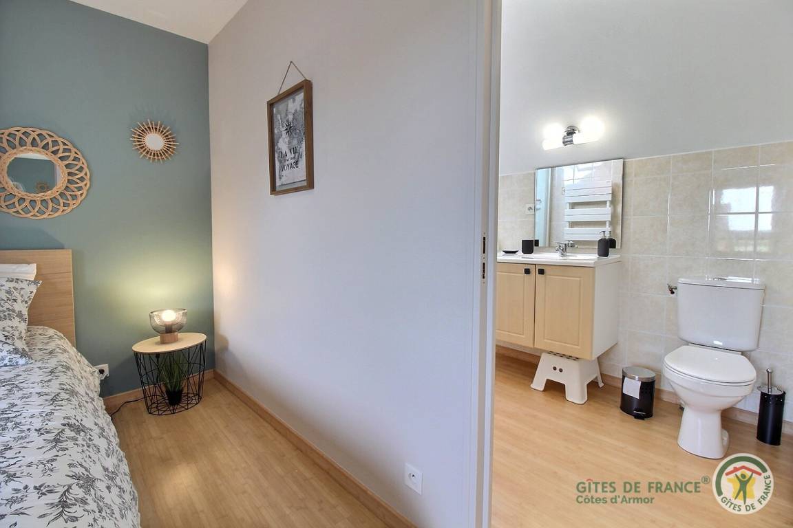 „Nos hôtes ont tout fait pour nous mitonner un séjour réussi, malgré la météo incertaine de cette mi-janvier. Accueillis par Solène et Sylvain avec un petit feu dans le poële à bois, nous découvrons ce petit gîte adorable, décoration soignée et si confortable, la chambre à l'étage lumineuse avec grand placard et TV SDB (avec douche et WC) et le RDC avec encore TV (et canapé de luxe!) et WC aussi, quant à la cuisine, rien n'y manque. Cerise sur le gâteau breton, la voiture est garée devant le gîte sécurisé par un portail électrique, calme et tranquillité. Merci encore à nos hôtes si amoureux de leur belle région des Côtes d'Armor.“