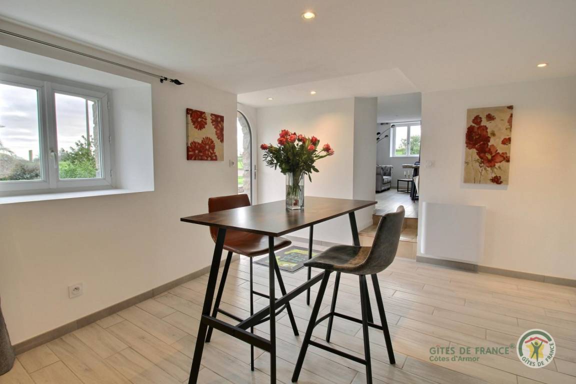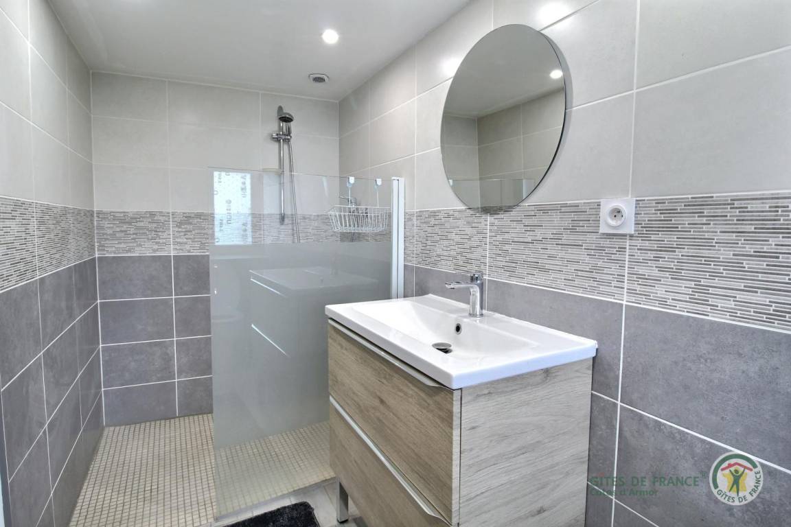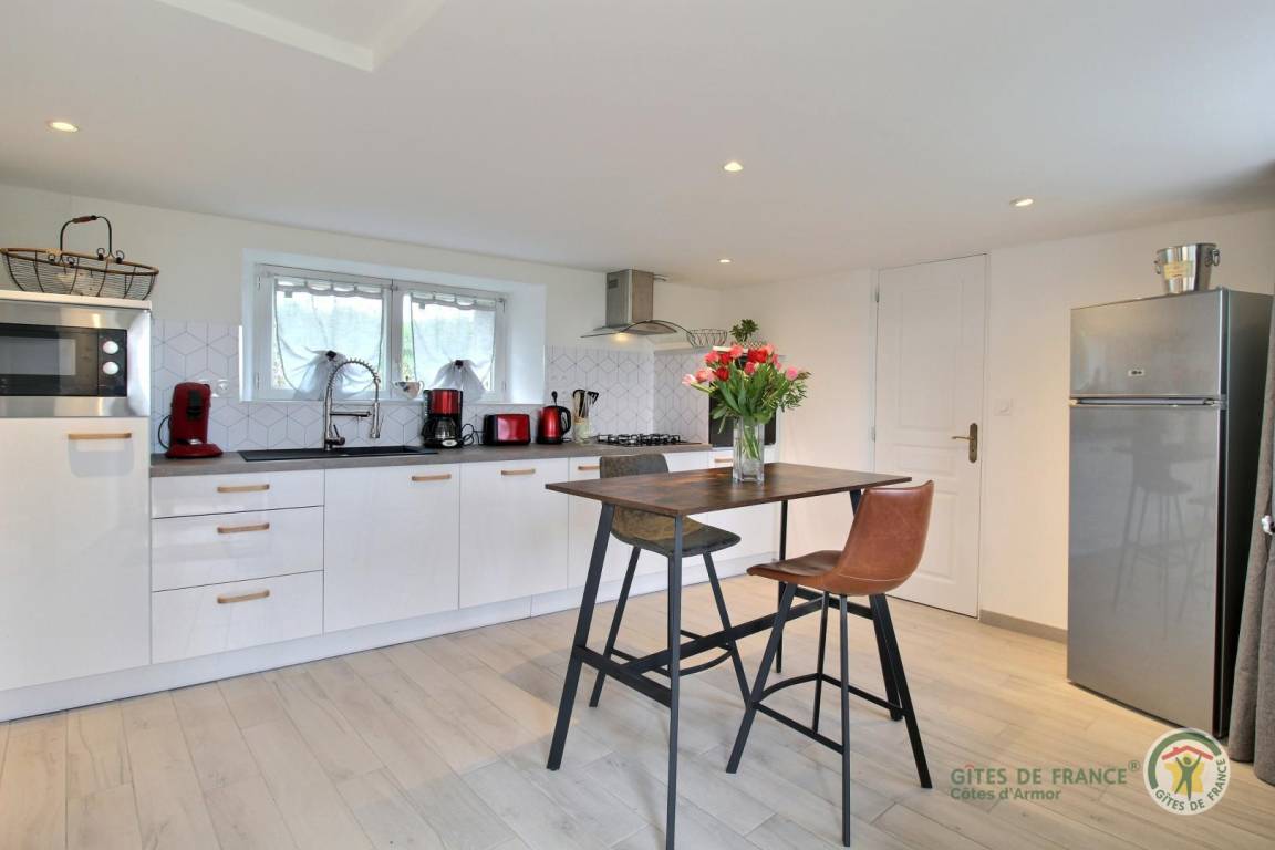„Gite moderne, tout neuf, très bien équipé et décoré, grande tv connectée, dans une belle propriété au calme, terrasse bien aménagée pour se ressourcer, accueil très chaleureux des propriétaires (cidre, crêpes, légumes bio du potager, conseils de balades), présents si besoin mais discrets. Séjour parfait avec un chien, possibilité d'approcher la voiture tout près, le 2eme gite est distant et je n'ai même pas aperçu les occupants. Très belle région, le bord de mer est proche. J'y reviendrai avec plaisir“
