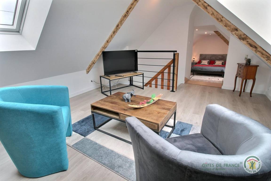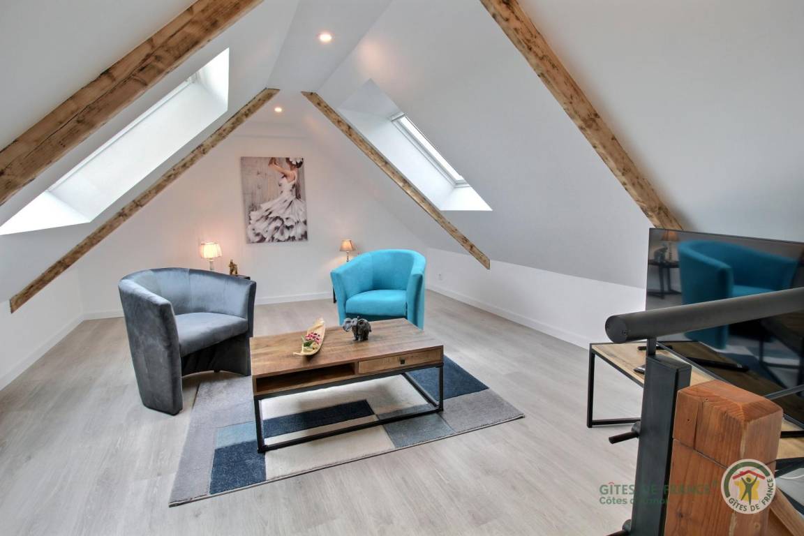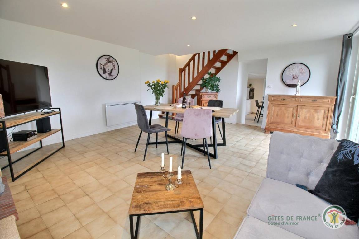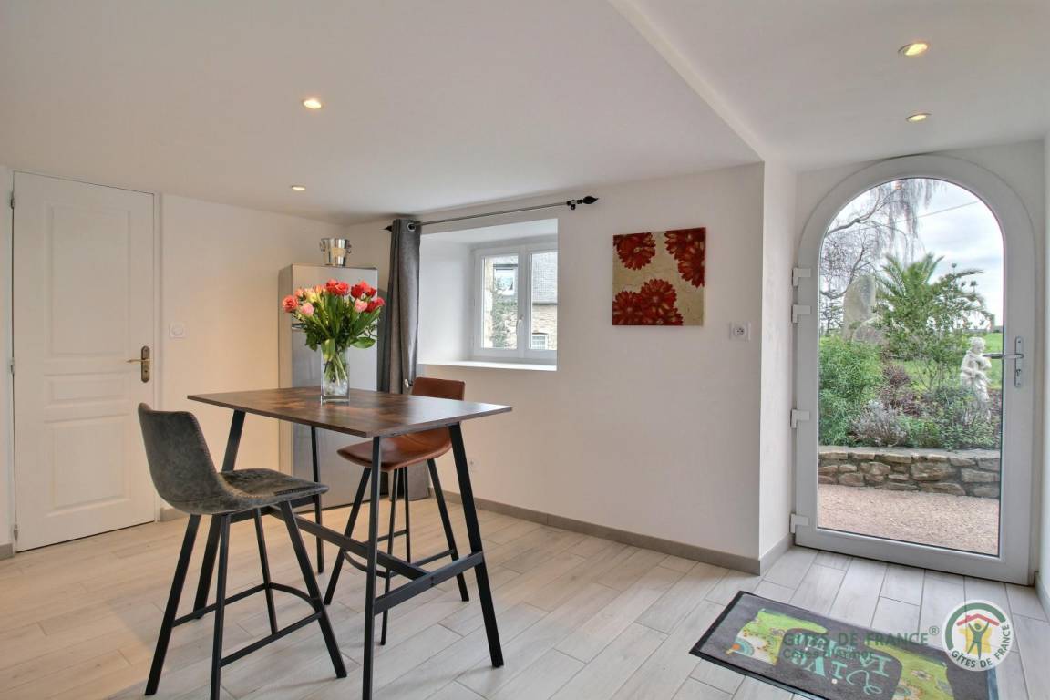 „Gite moderne, tout neuf, très bien équipé et décoré, grande tv connectée, dans une belle propriété au calme, terrasse bien aménagée pour se ressourcer, accueil très chaleureux des propriétaires (cidre, crêpes, légumes bio du potager, conseils de balades), présents si besoin mais discrets. Séjour parfait avec un chien, possibilité d'approcher la voiture tout près, le 2eme gite est distant et je n'ai même pas aperçu les occupants. Très belle région, le bord de mer est proche. J'y reviendrai avec plaisir“
