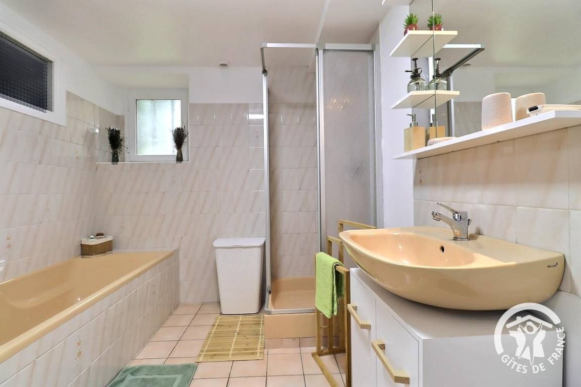 – Badezimmer mit Dusche und Badewanne
