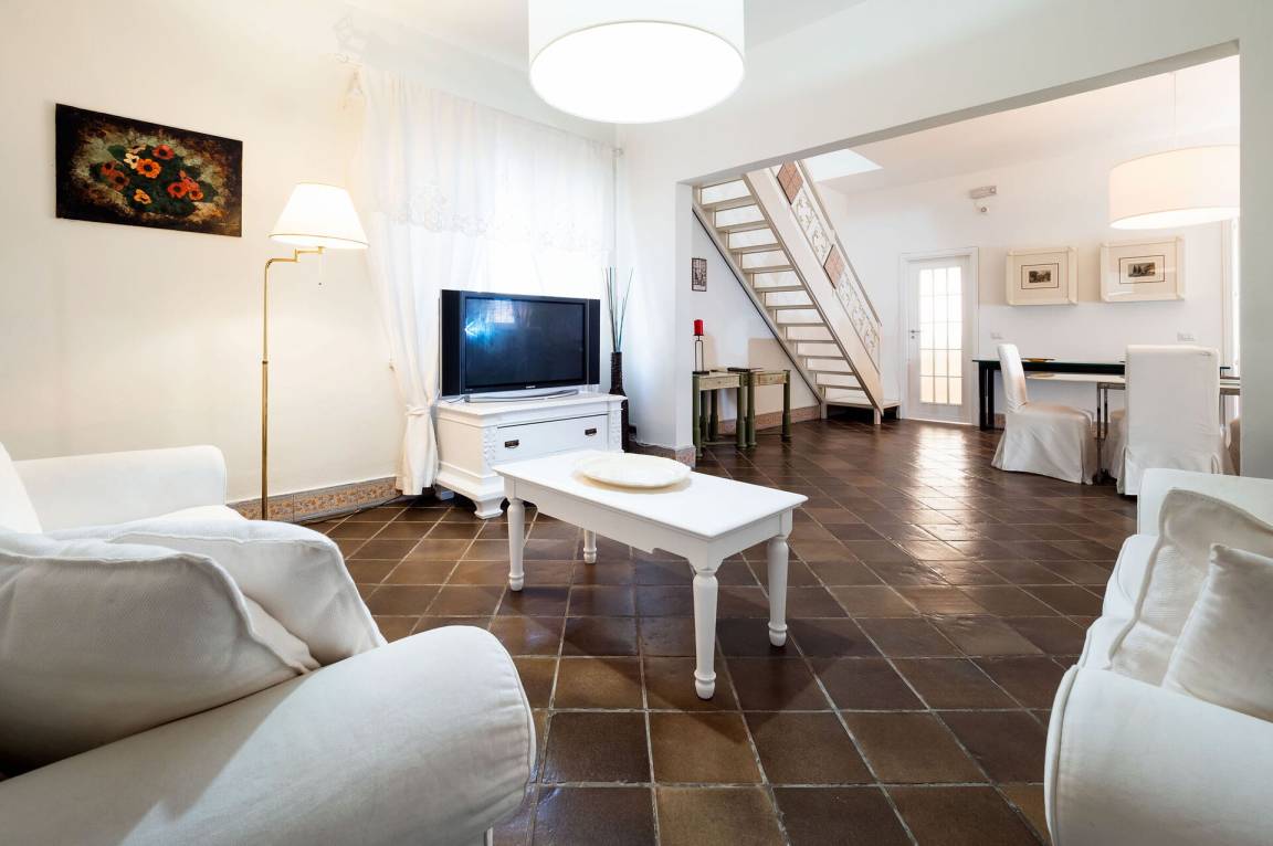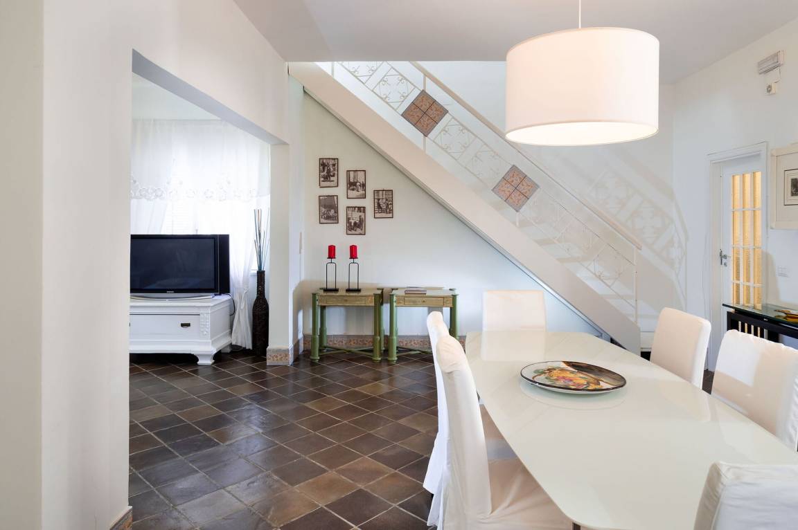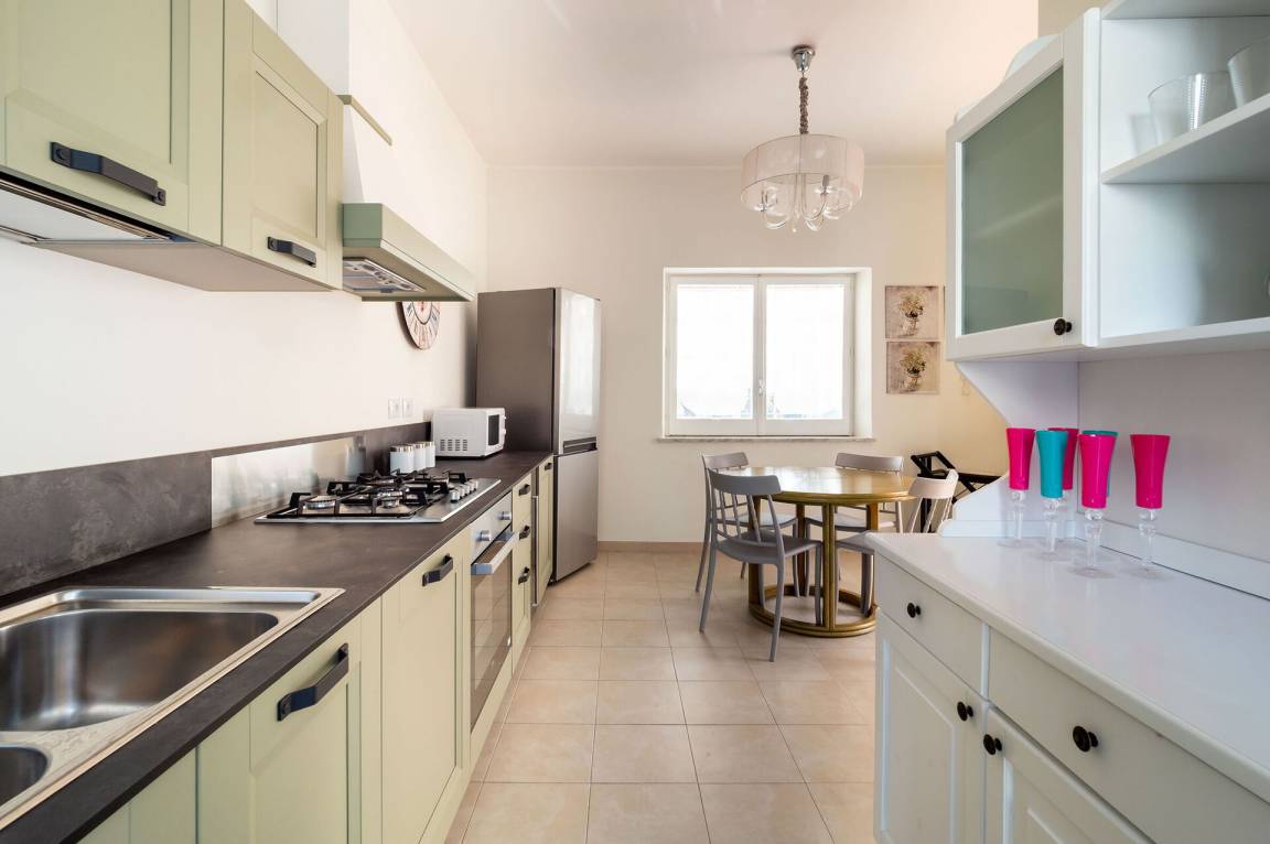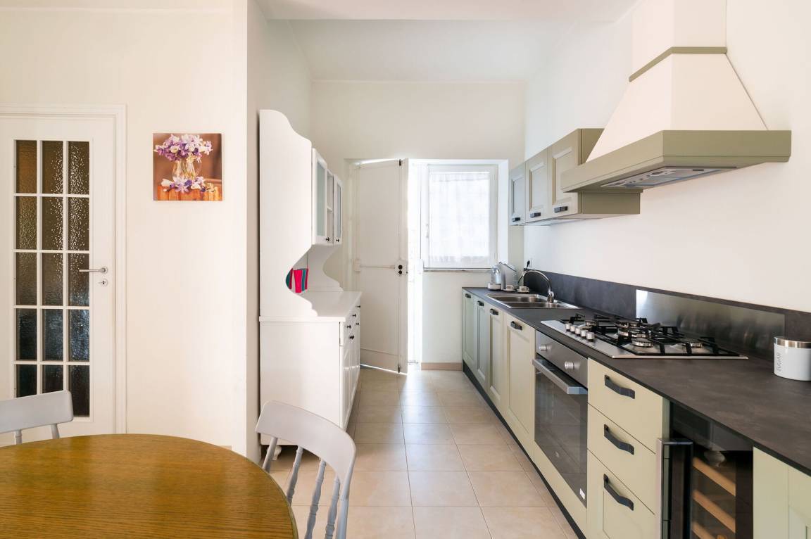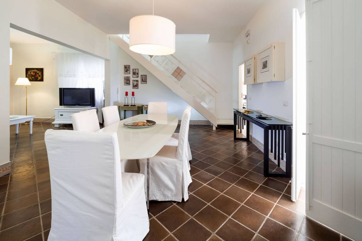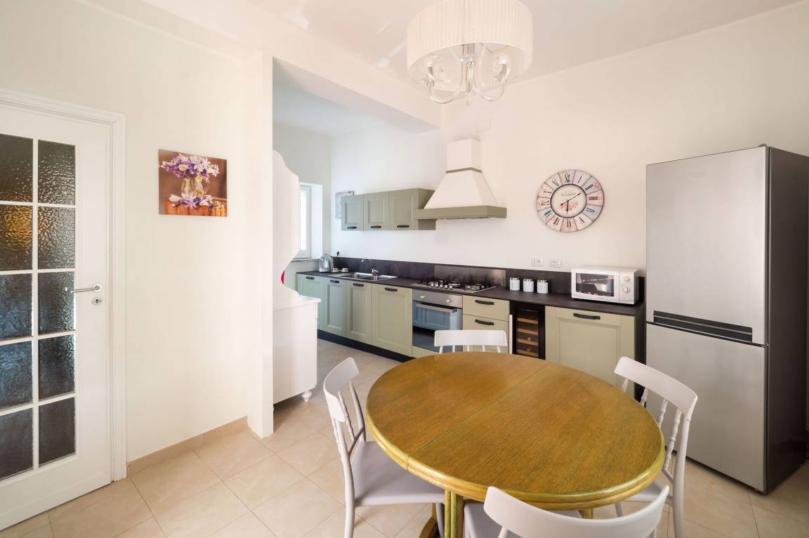Wohnküche: gut ausgestattete Küche, Esstisch, Spülmaschine, Kühlschrank, Tiefkühler, Mikrowelle, Ofen, Toaster, Amerikanische Kaffeemaschine, Sofa, WiFi Internet, Klimaanlage, Kinderhochstuhl, Satelliten-TV, Rauchmelder, Ausgang auf die Terrasse.