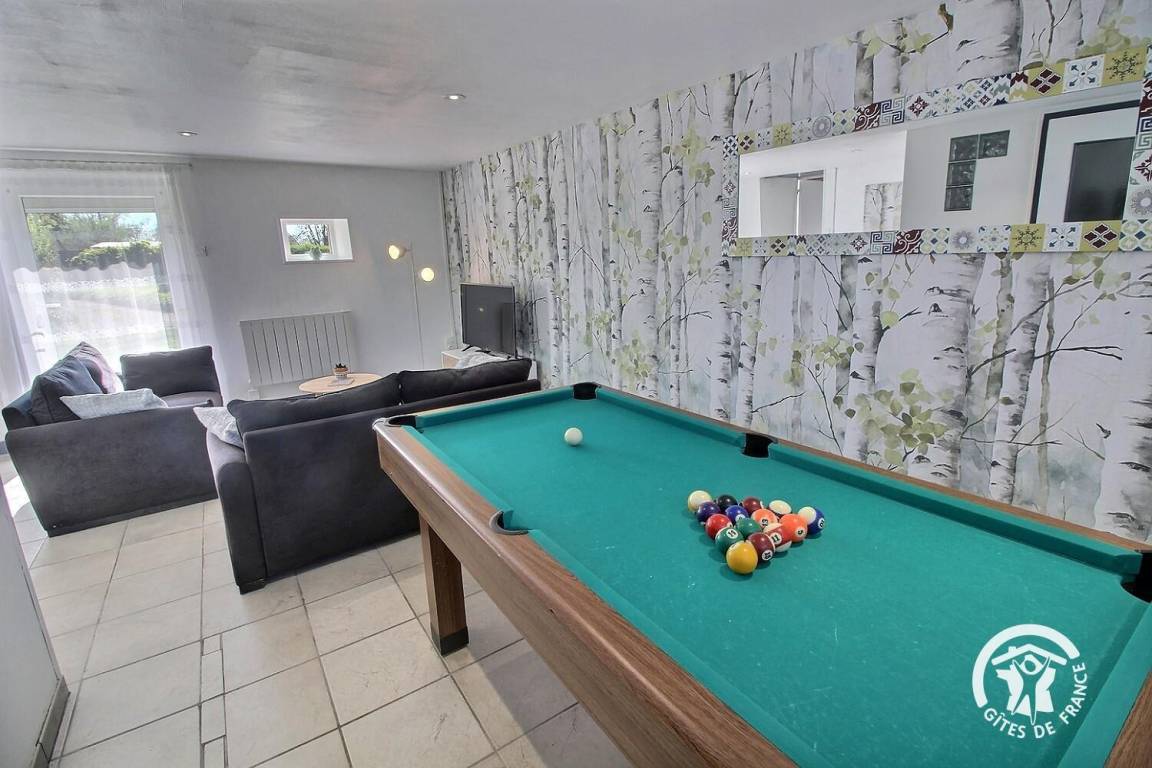• Ein Wohnbereich mit Smart-TV und Billardtisch