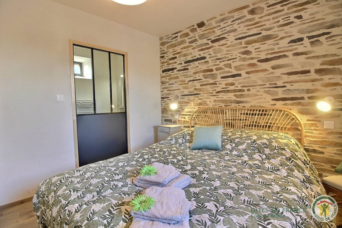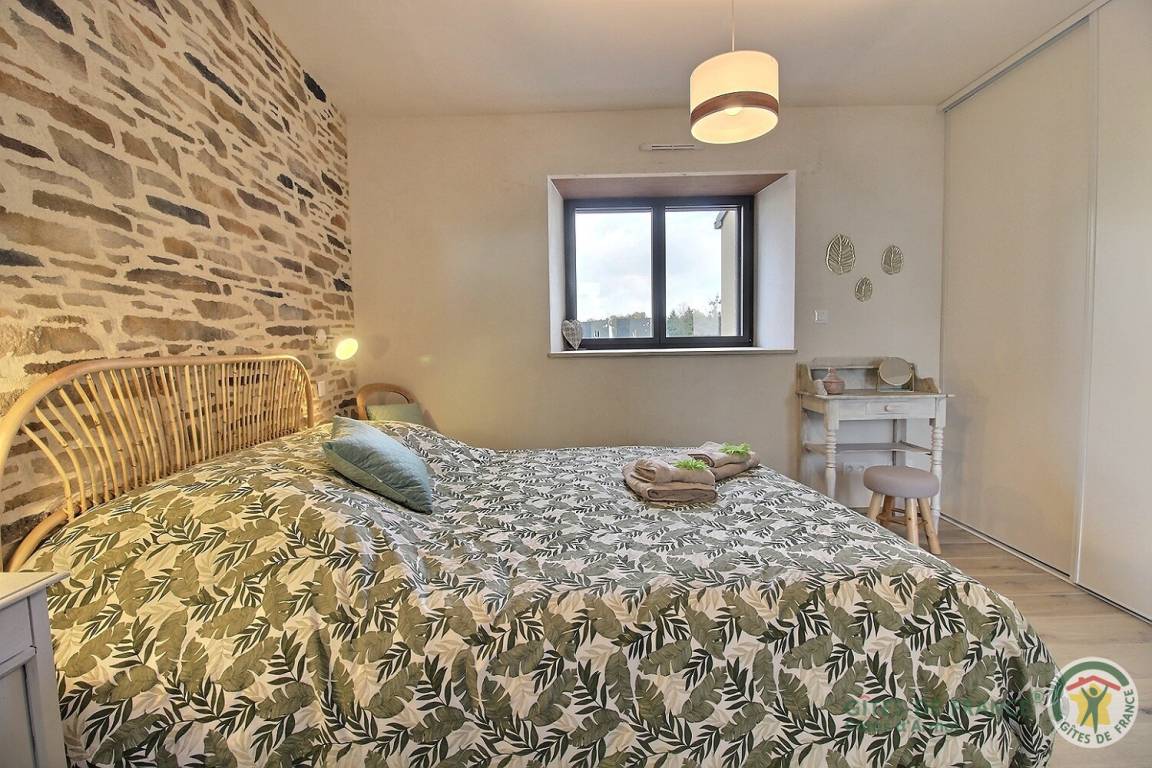 Ihre Ferienwohnung umfasst im Erdgeschoss: ein Wohnzimmer mit offener Küche zum Loungebereich, einen Wasch-/Abstellraum, ein Schlafzimmer mit 1 Doppelbett (160x200) mit angrenzendem eigenem Badezimmer (Waschbecken und Dusche), ein separates WC mit Waschbecken, eine Eingangshalle mit großem Ankleideraum. Im 1. Stock: ein Lese-Entspannungspodest und ein Paravent, ein Schlafzimmer mit 1 Doppelbett (140x190), ein Schlafzimmer mit 2 Einzelbetten (2x90x190), Badezimmer (Dusche und Waschbecken), separat Toilette mit Waschbecken. Am Südgiebel eine schöne Terrasse unter einem Hof mit Sommerküche (Kühlschrank, Spüle, Plancha). An der Ostfassade führen eine 25 m² große gepflasterte Terrasse und einige japanische Stufen zum ganzjährig verfügbaren 5-Sitzer-SPA (Zugang und Nutzung = 100 €/Woche, auf Anfrage, Zahlung an die Eigentümer). Großer Garten mit Rasen von 2500 m², der von einem kleinen Damm begrenzt und von Feldern umgeben ist. Geteerter Parkplatz auf der Westseite, am Eingang der Gîte.