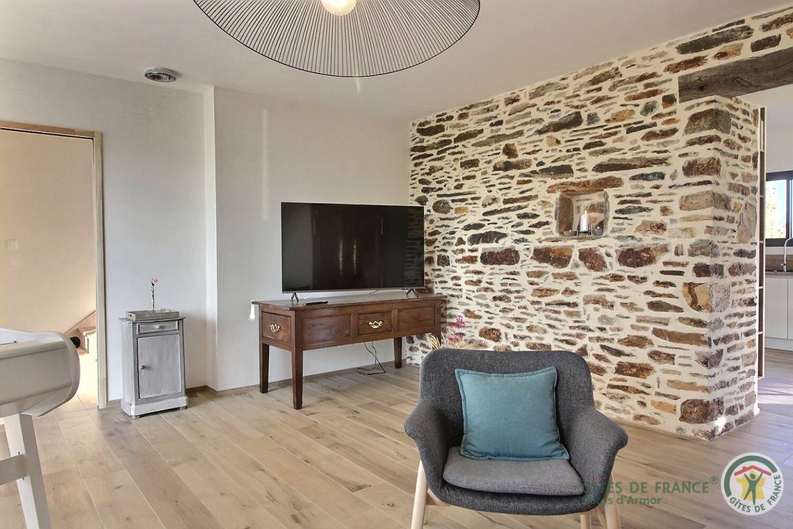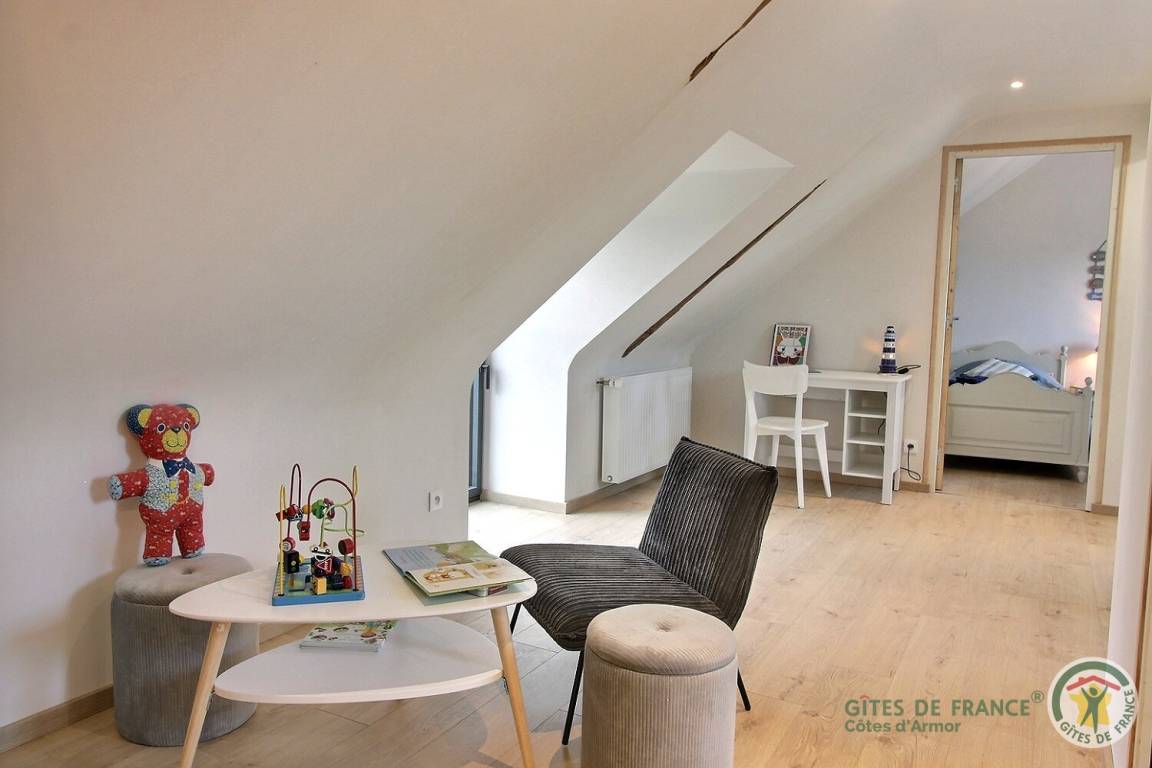 „Propriétaires très sympas avec plusieurs petites attentions à l’arrivée et au départ. Maison spacieuse et confortable, grand jardin (loin de la route), équipements de marque, grande TV et baby-foot breton. Petits points négatifs: La présence de poils de chien dans toute la maison, la peinture de certaines pièces qui n’a pas l’air finie, le débit Wifi (4 mbps) et la présence de la maison familiale toute proche. Nous recommandons ce gîte qui est toutefois un peu cher.“